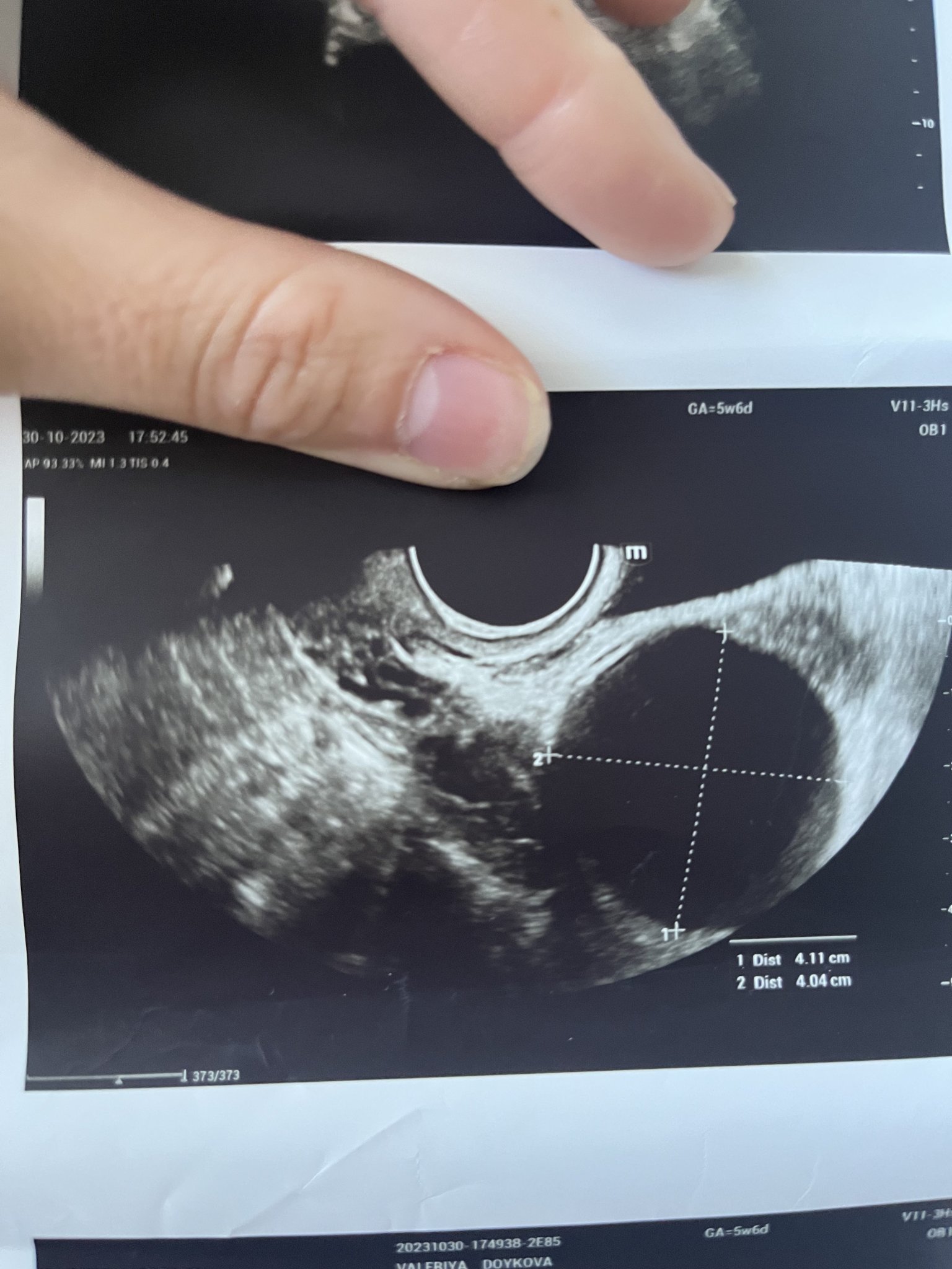 Първия ден на последната ми менструвация беше на 19.09.2023г. 4 положителни теста за бременност. Вччера беше първият ми преглед. Прикачам снимките от него. Видя се плоден сак с размер 18мм, ембрион не. Аз съм с две матки и плодния сак е в лявата матка. В левия яйчник имам и 40мм киста Sad . Притеснено ми е защо при тази големина на плодния сак не се видя ембрион. Преди 8 месеца претърпях куха беменност и се притеснявам изключително много да не се повтори. Чак след месец ще ми бъде следващия преглед, а до тогава ще се побъркам. Моля, ако някой може да помогне със съвет или е бил в подобна ситуация, да пише. Благодаря! Simple Smile
