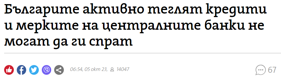 Хората продължават да теглят кредити, защото лихва 2.5-3% им се струва ниска (тя си е ниска) и не вярват, че ще се качи. Но ако ги питаш защо не може пак да стане 7% - не знаят.