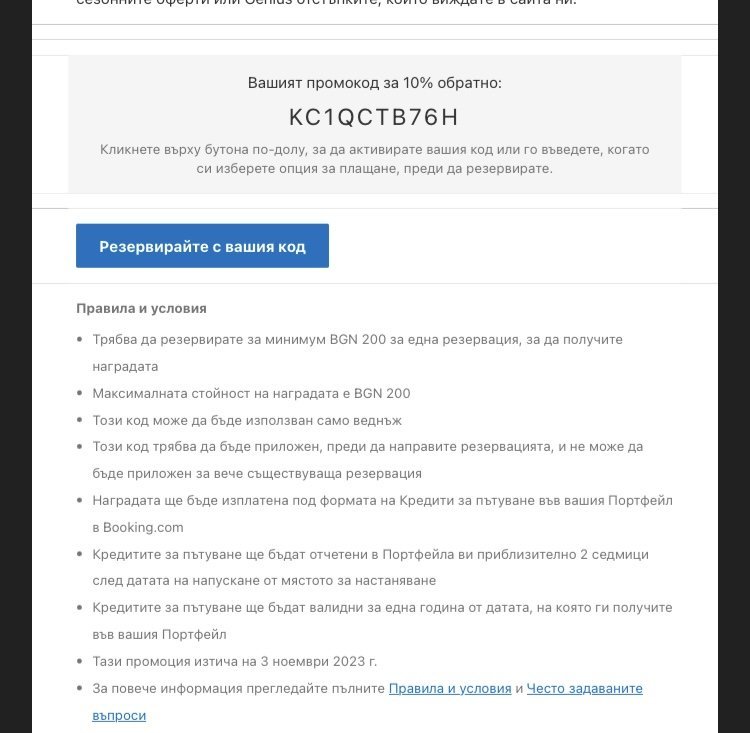 Здравейте! Някой има ли свободен код за букинг и, ако може на лично съобщение? Ще съм благодарна. Simple Smile