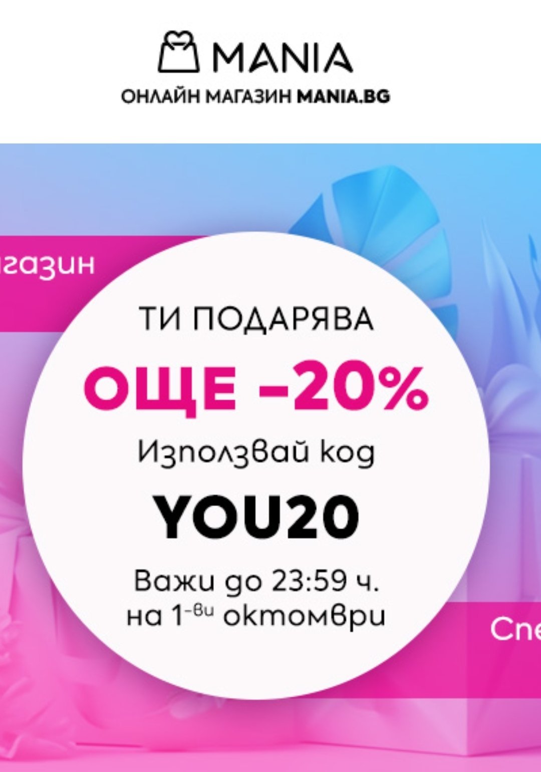 Кодът Bluepoint15 дава 15% отстъпка от ненамалената цена при покупка на книги от сайта ozone.bg. Кодът е валиден до 31.12.2023. Кодът не важи за книги с кауза, книги с предварителна поръчка или с етикет Супер цена, както и за книги от издателствата Orange Books, Давид, Егмонт, Книгомания, Нов български университет, Рибка, Сиби, Труд и Право, УИ "Св. Климент Охридски", Фют
