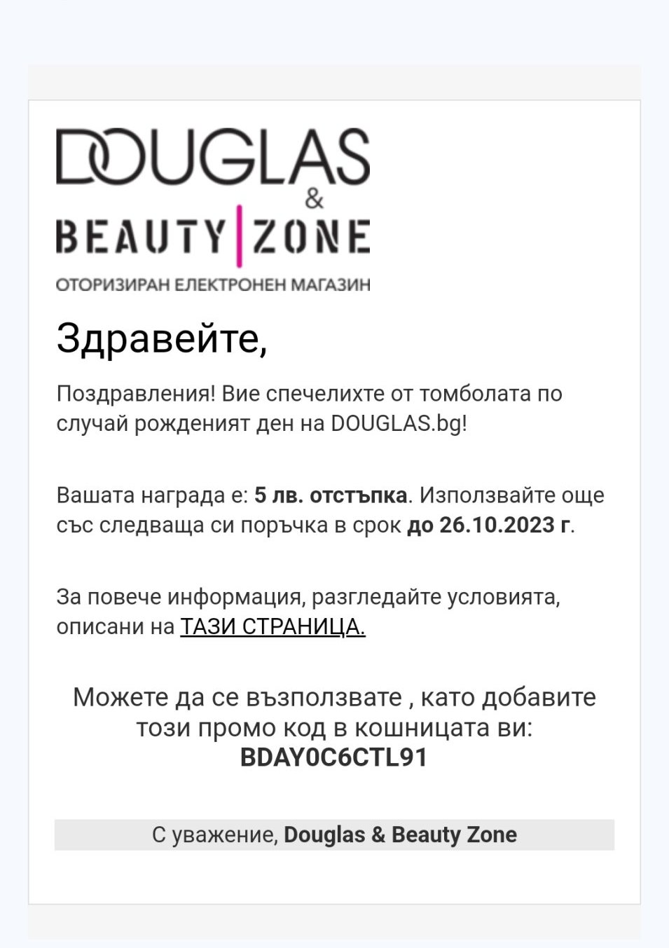 Код за -5лв в Дъглас до днес: BDAYISHORKQV