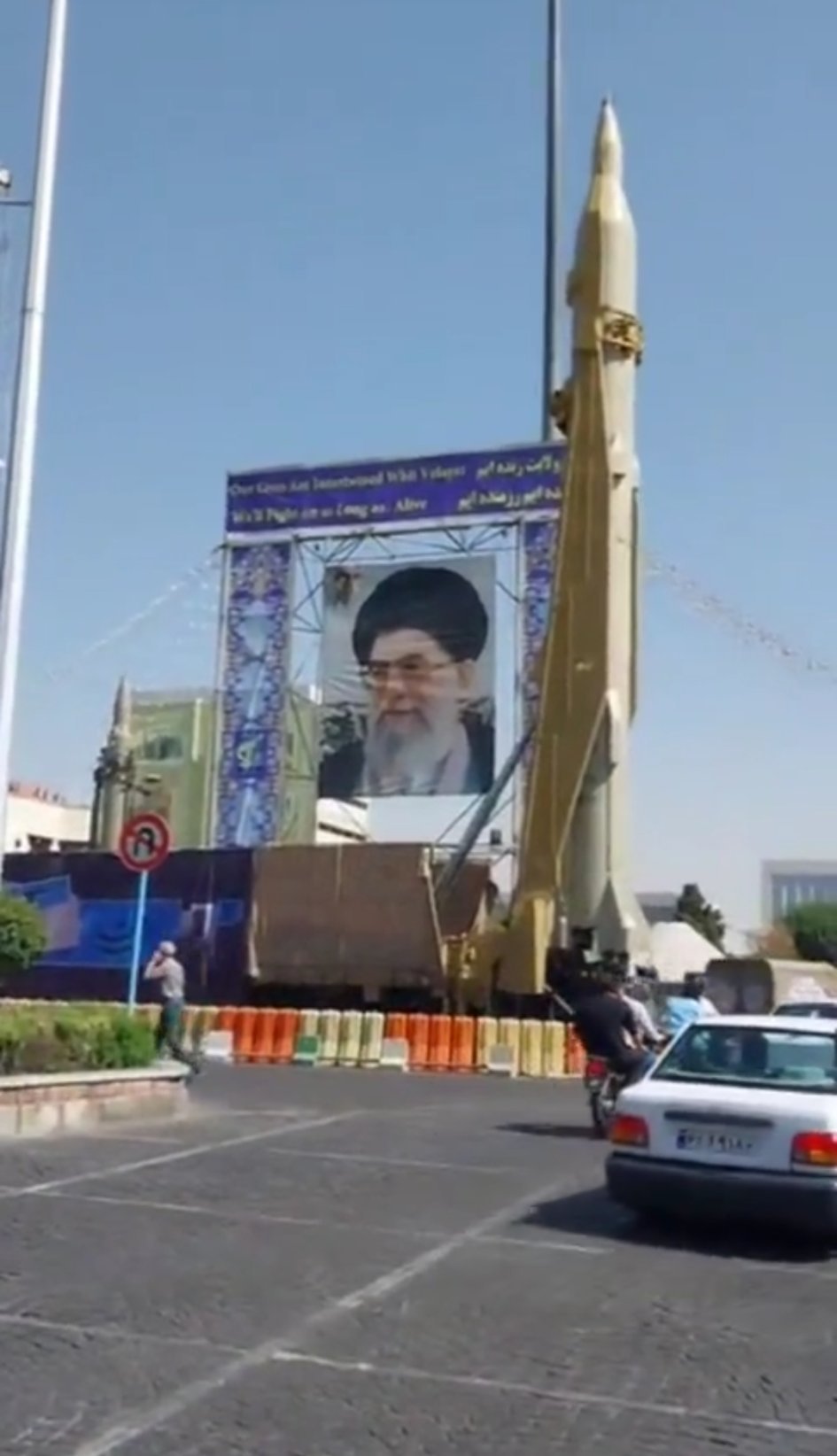 Навършват се 33 години от Иран-Ирак войната, цяла седмица празнуват, да ви покажа съвсем мъничко колко луди могат да бъдат там, сложили са гигантски фалостични ракети Joy по улиците на Техеран.