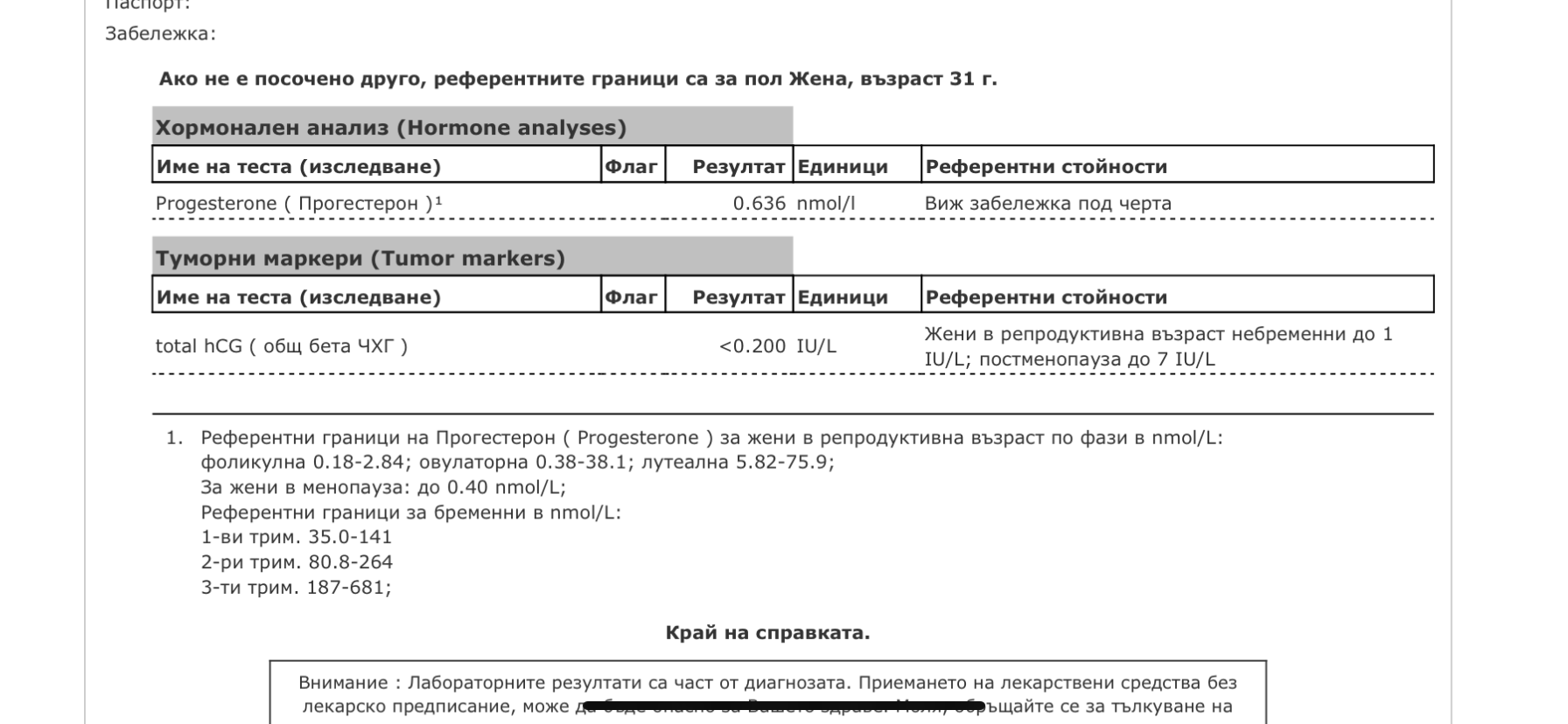 При мен същата като вчера, лошото е че температурата ми падна🥺 сега е 36,9, отидох да пусна чхг и прогестерон, но чак утре ще е готов🥺 мисля да пусна и в рамус тъй като там днес би бил готов. Просто не знаех че на другото място е чак за утре..