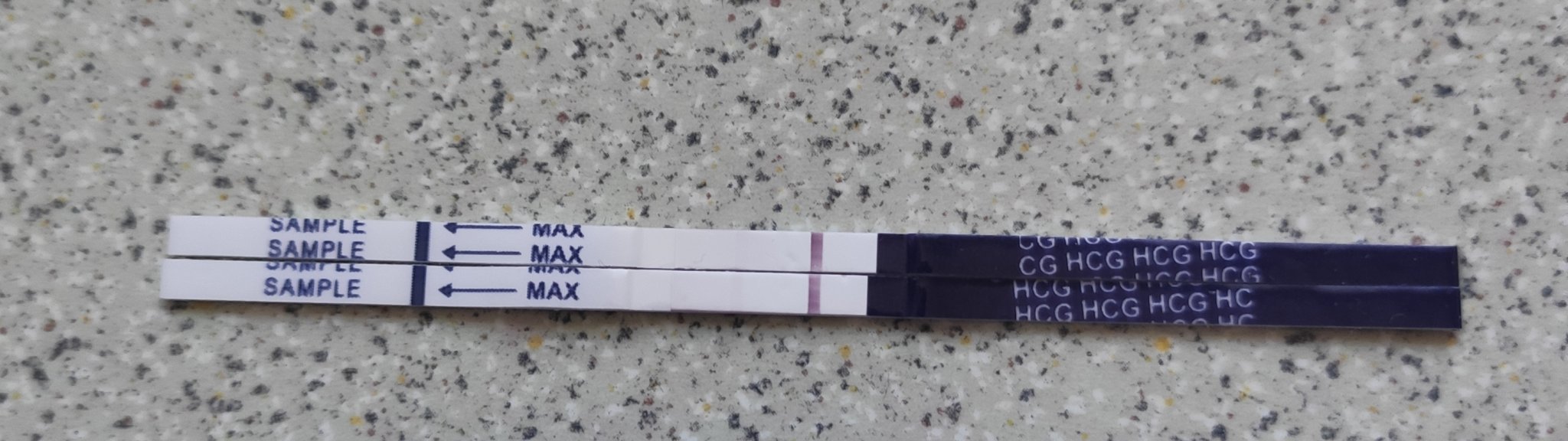 Момичета, пак аз, но се страхувам - имам предишен опит с фалшив положителен тест /макар сега да не е точно същото при наличието на ЧХГ 400/, но според вас нормално ли е първият тест, правен на 08.01 /2 дни след закъснение, НЕ с първа урина/ да е по-наситен от вторият такъв, правен тази сутрин?