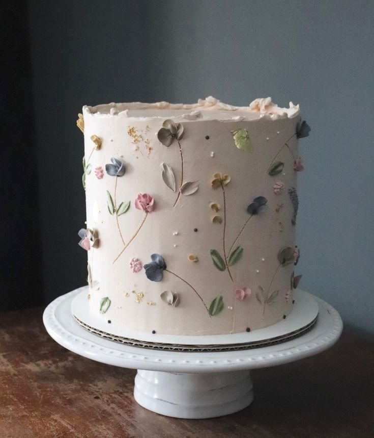 На първата торта цветенцата са направени с обикновени накрайници за шприцоване, а листенцата с палетен нож.