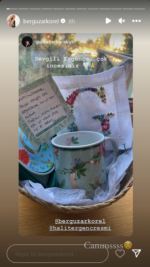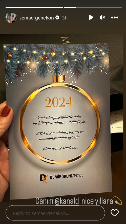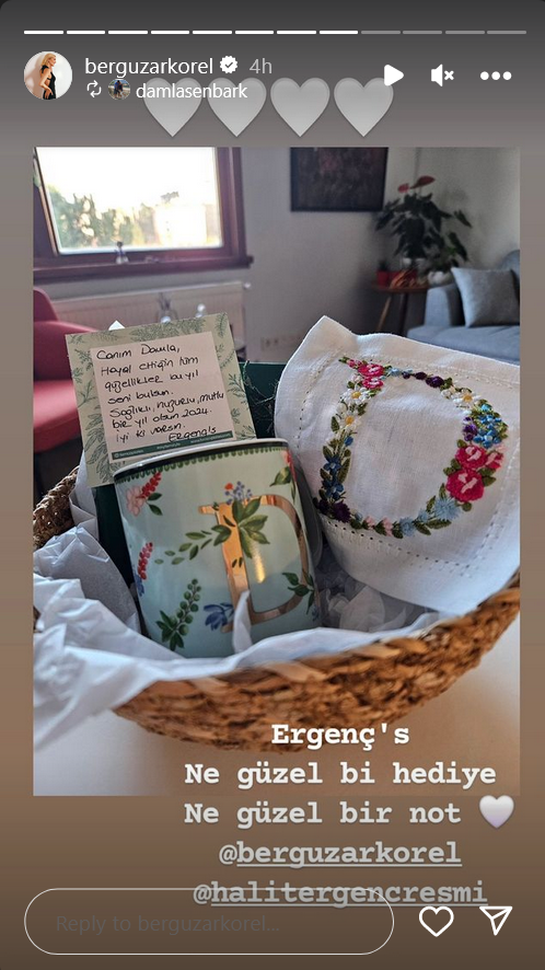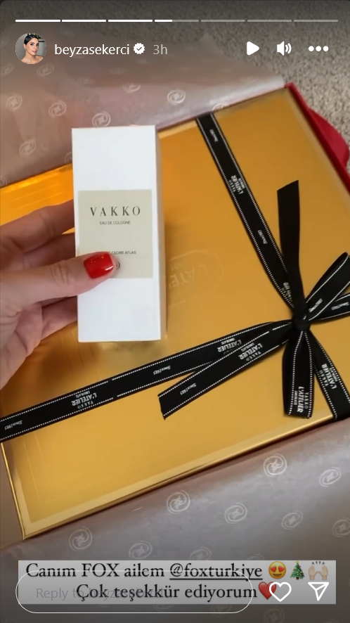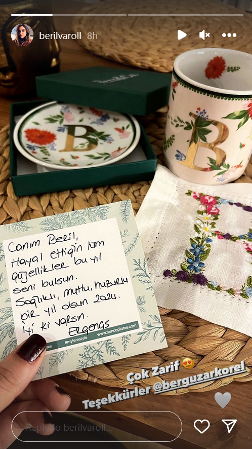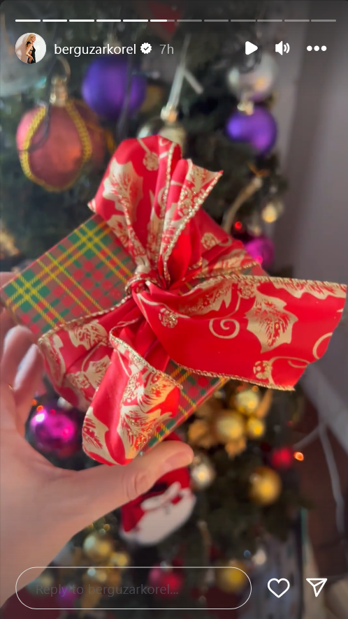 И Берил Варол от мениджърската агенция е получила подарък от сем. Ергенч, а на втората снимка - Берг вече се приготвя за Нова година. "Защото съм зодия Дева - başaklık". /Аз съм по - чевръста от нея Joy/