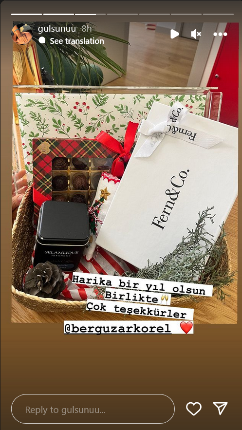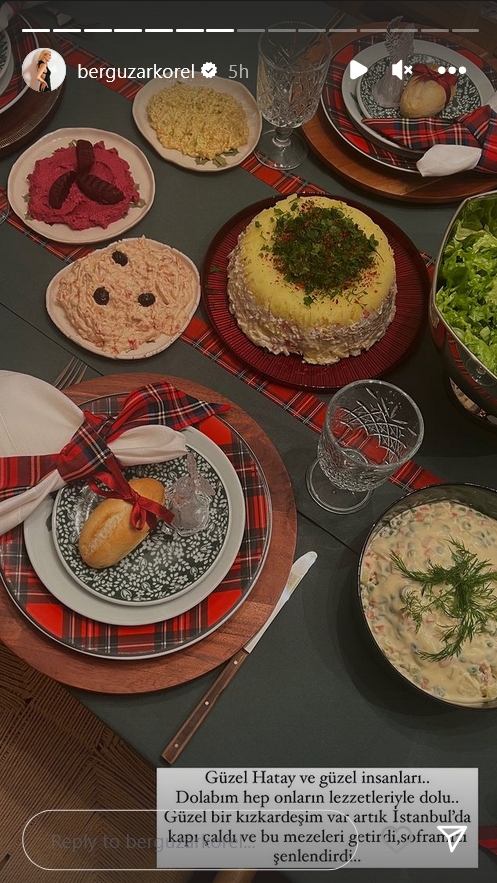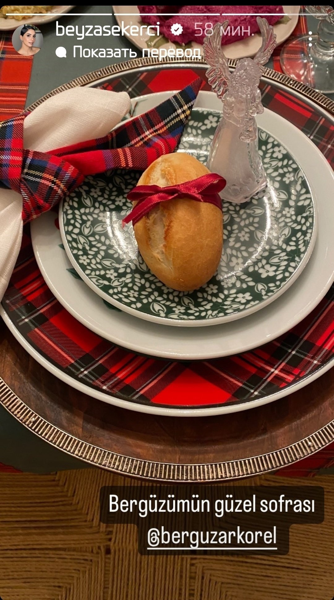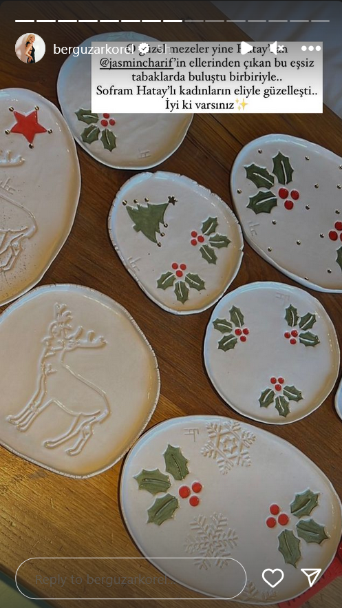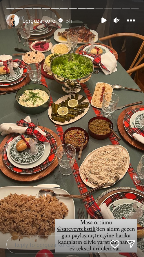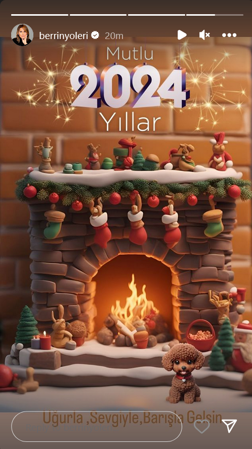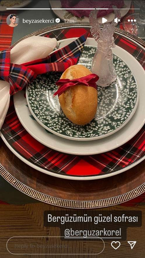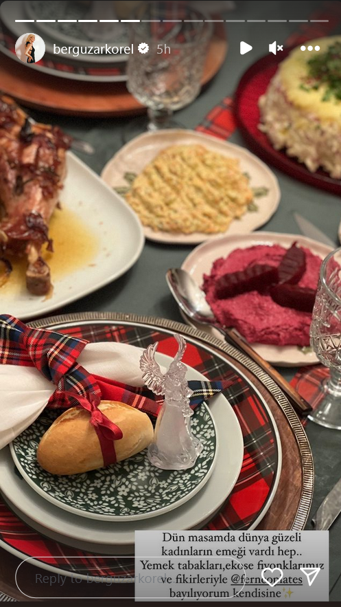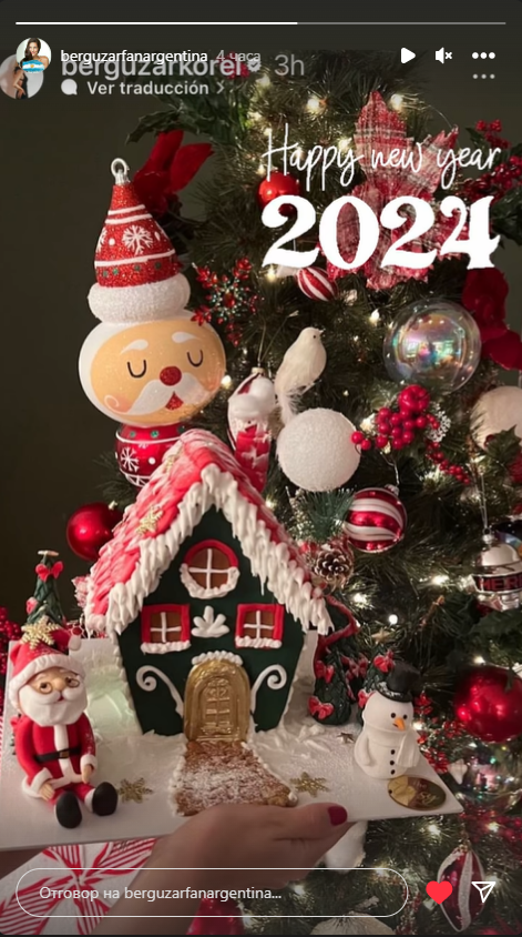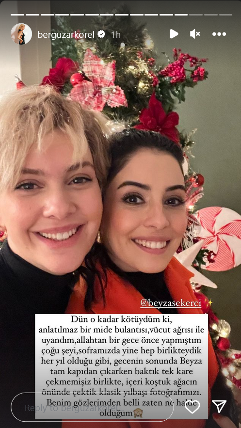 "Вчера мне было так плохо, я проснулась с неописуемой тошнотой и болью в теле, слава Аллаху, большую часть дел я сделала накануне вечером, мы снова были все вместе за нашим столом, как и каждый год, в конце ночи, когда моя Бейза уже выходила за дверь, мы поняли, что не сделали ни одной совместной фотографии, забежали внутрь и сделали наше классическое новогоднее фото под елкой.