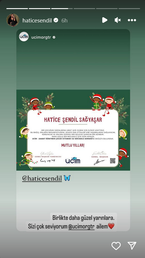 Тя и Бурджу Бириджик също получиха картички от Асоциацията срещу насилието над деца /UCİM/