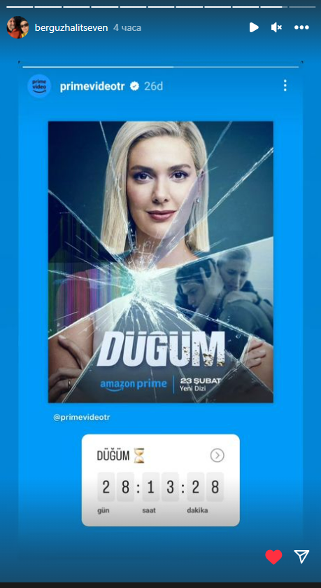 Афишът на "Възел" със същия текст беше споделен от Prime Video Türkiye, от колеги от екипа, от Джан Улкай, Руткай, от мениджърската агенция и от приятелите на Берг.