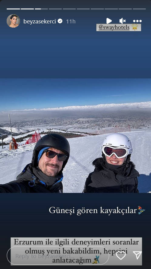 Майка му и баща му демонстрират отлично скиорско ниво. Енгин е публикувал клипче с Бейза, но в стори, а тя показва само него. Ski
