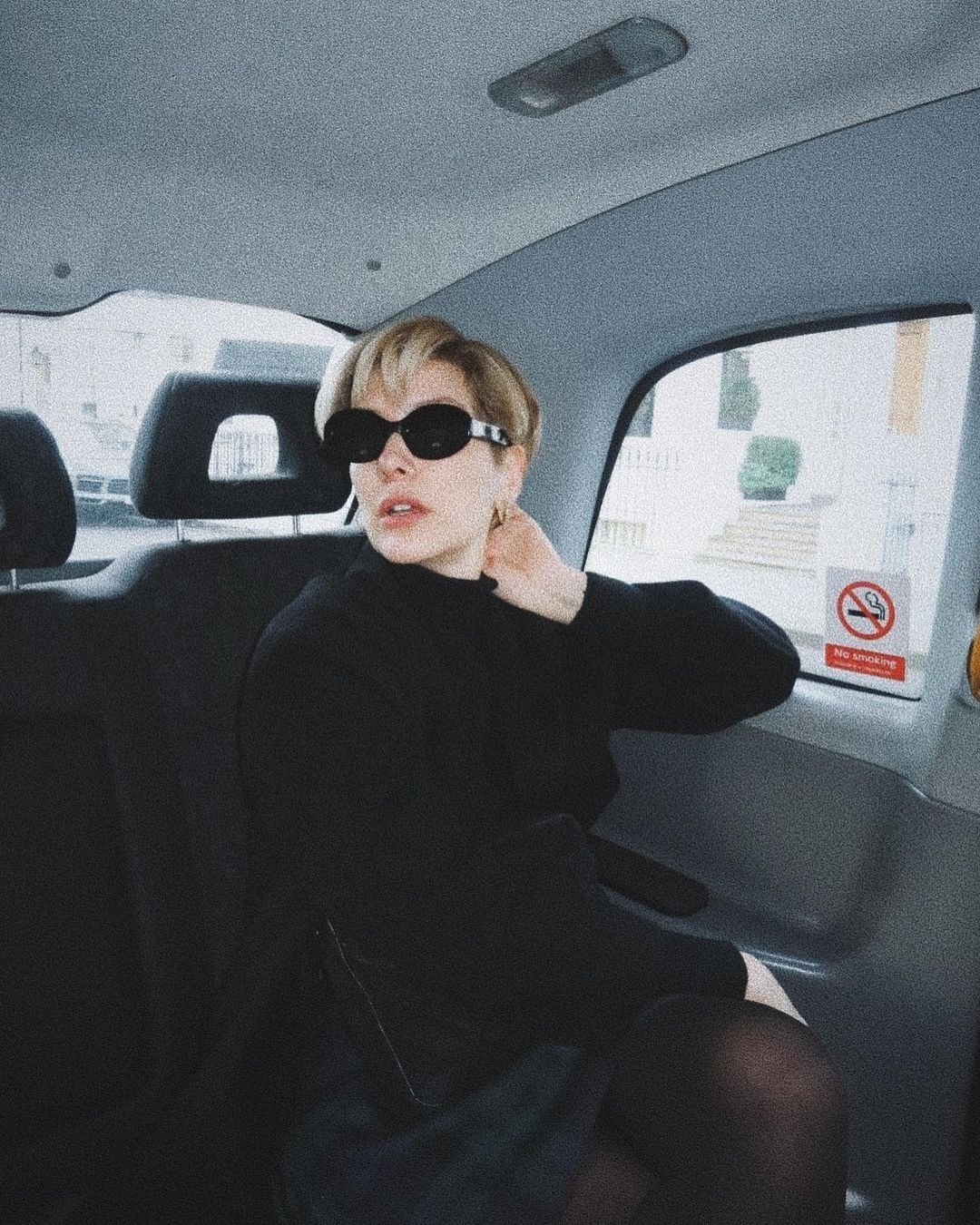 Снимките са от Ирем Бербероолу, а Берг е написала: "Решихме да вземем такси между пл. Слоон и Кенсингтън. @iremberberoglu за Vogue ли е снимала, не знам.😂"
