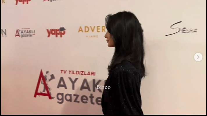 Бирдже на червения килим; с Мехмет Гюнсюр и Пънар Джура от мениджърската агенция; и с наградата