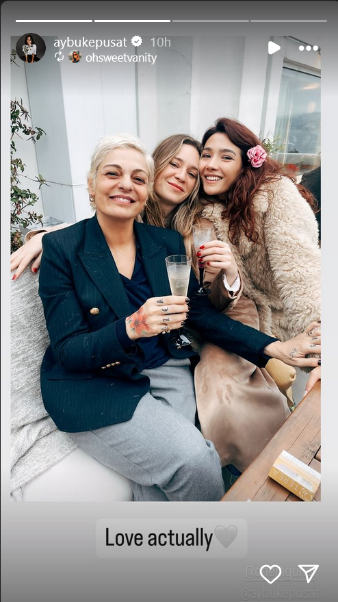 Тази снимка е от журналистката Йомюр Сабунджуоолу, която направи интервю с тримата. Написала е - "Срещнахме се с нашите много, много любими хора тази седмица♥️ Скъпите Бергюзар Корел, Джанер Джиндорук и Серкан Алтънорак са ми на гости утре /тоест днес/. Очакваме ви, за да гледате нашия весел разговор, в който развързваме възлите."