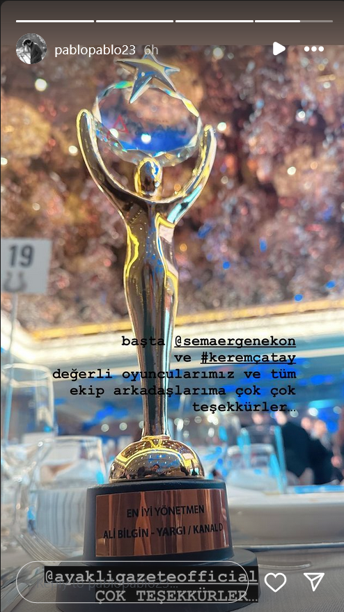 И поздрав от Бирдже за Кеерем Бюрсин - получил снощи същата награда на "Аяклъ газет"