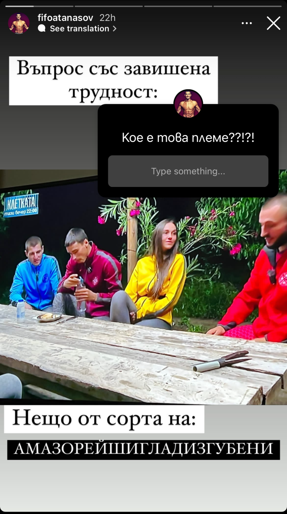 Това, което ми направи впечатление от интервютата на Морунов и Михаела, че са им са обадили от игрите от днес за утре. Ма-как-така-бе? Направо си прилича на нова наложена легенда, че видиш ли, когато ги бутнат ex-играчите са готови да дойдат, да дадат всичко от себе си, да преживеят отново това приключение, па макар и за един ден.
