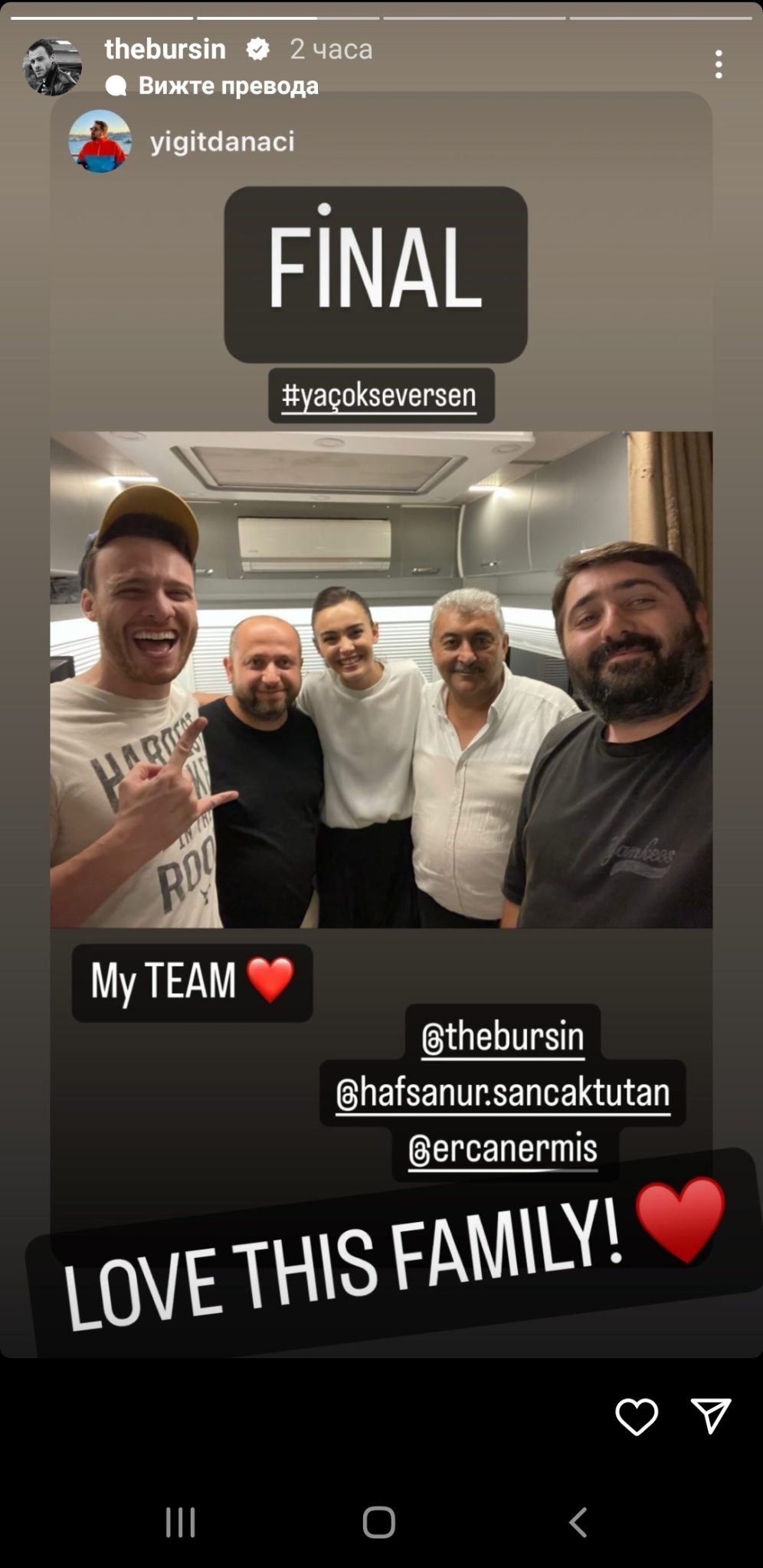 Разбира се, на снимачната площадка могат да възникнат неочаквани моменти. Но преди да започна работа, споделих с Керем моите очаквания от нашето взаимодействие и той ме подкрепяше във всичко. Затова на снимачната площадка всичко върви чудесно.