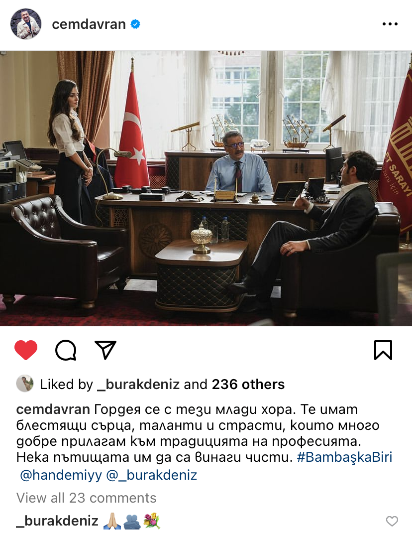 Честно казано Друг човек е проект, който трудно бих си избрала да гледам, ако беше американска поредица в Нетфликс например. Гледам с възхищение заради Ханде и Бурак(както беше и със сезон 1 на Шахмаран, там също си имаме фантасмагория). Покрай тях се възхищавам и на цялостната “паница” от актьори, режисьор, редактори, сценаристи, музика и т.н. Не е за всеки. Факт е, че турците не си тачат сякаш много актьорите. Но то кой го прави? Ние да не би да сме всеки ден в Народния театър?