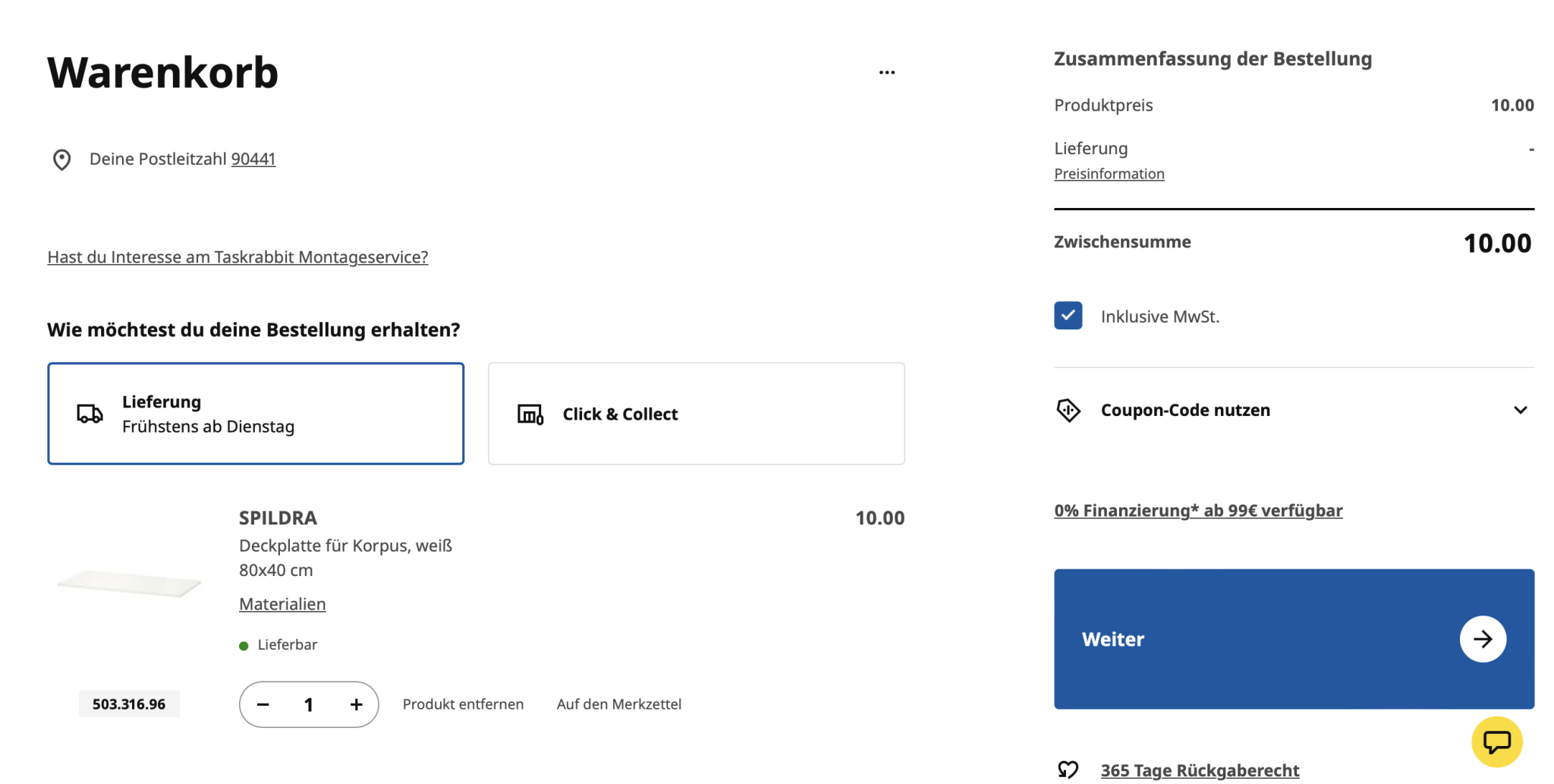 (имам въведен адреса на габко, затова дава 90441 код, може ако се ползва друг превозвач да излезе и др.цена на доставка)