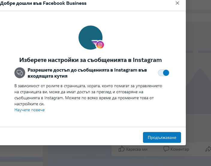 Направиха ме админ на фб страница. Предложих да направим инстаграм профил обвързан с нея. Направиха и обвързаха съответно двете страници. По някаква причина обаче аз нямам възможност при създаването на публикация във фейсбук да я публикувам и в инстаграм, или пък да създам само в инстаграм през фейсбук... Дава ми Reconnect срещу опцията Инст., където  излиза: "Потвърждаване на достъпа". Потвърждавам и ми излиза следното: /давам скриншотове/: