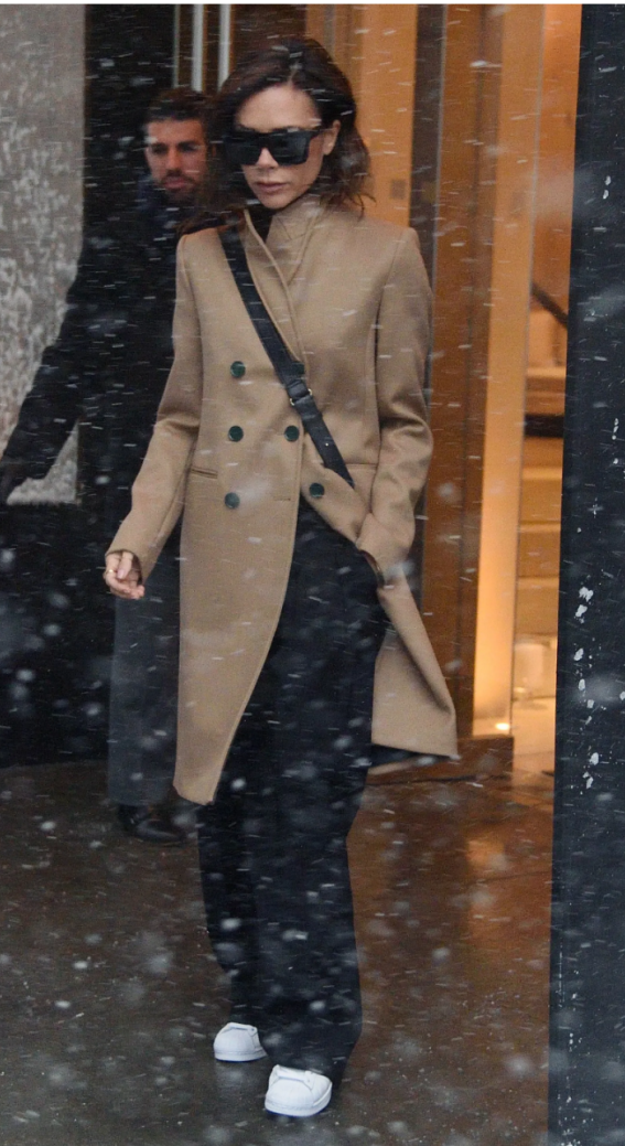 Чак ми е странно, че Виктория Бекъм е лансирала палто с кецове, тя, която не слиза от високите токове. Иначе аз не нося, но на други може да ми хареса, например по-горе. За себе си избирам друг тип удобни обувки за палтата в ежедневието.