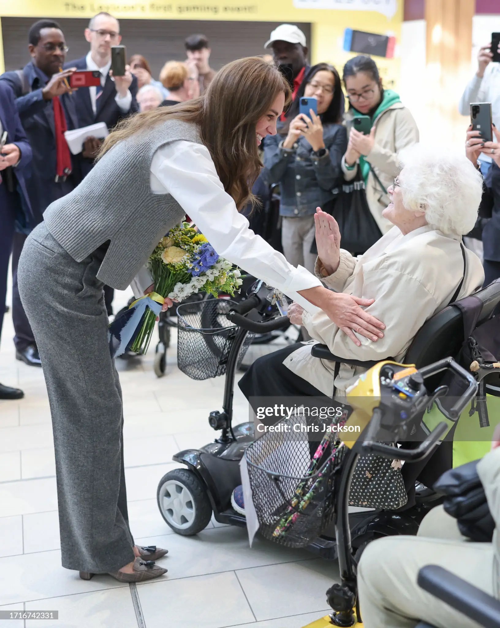 С местни хора, които са били на шопинг в центъра, който е посетила.