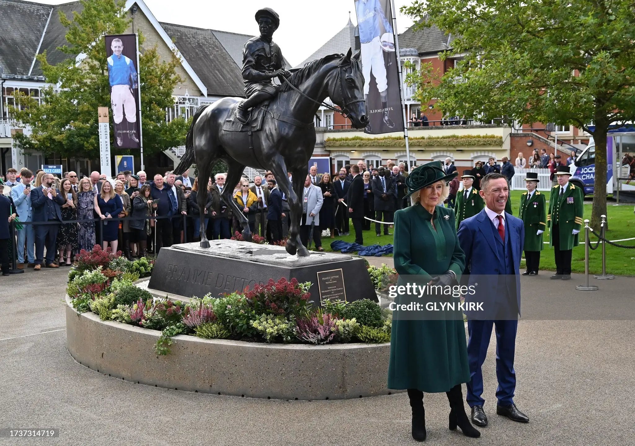 Камила присъства на Деня на британските шампиони на хиподрума Ascot, по време на който ще открие статуя на жокея Франки Детори.