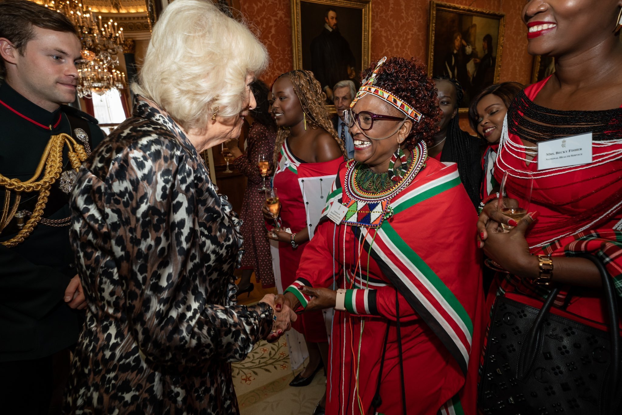 Крал Чарлз III и кралица Камила на прием в Бъкингамския дворец за кенийската диаспора в Обединеното кралство, за да отпразнуват топлите отношения между двете страни и силното и динамично партньорство, което продължават да изграждат преди държавното посещение на техните Величества в Кения.