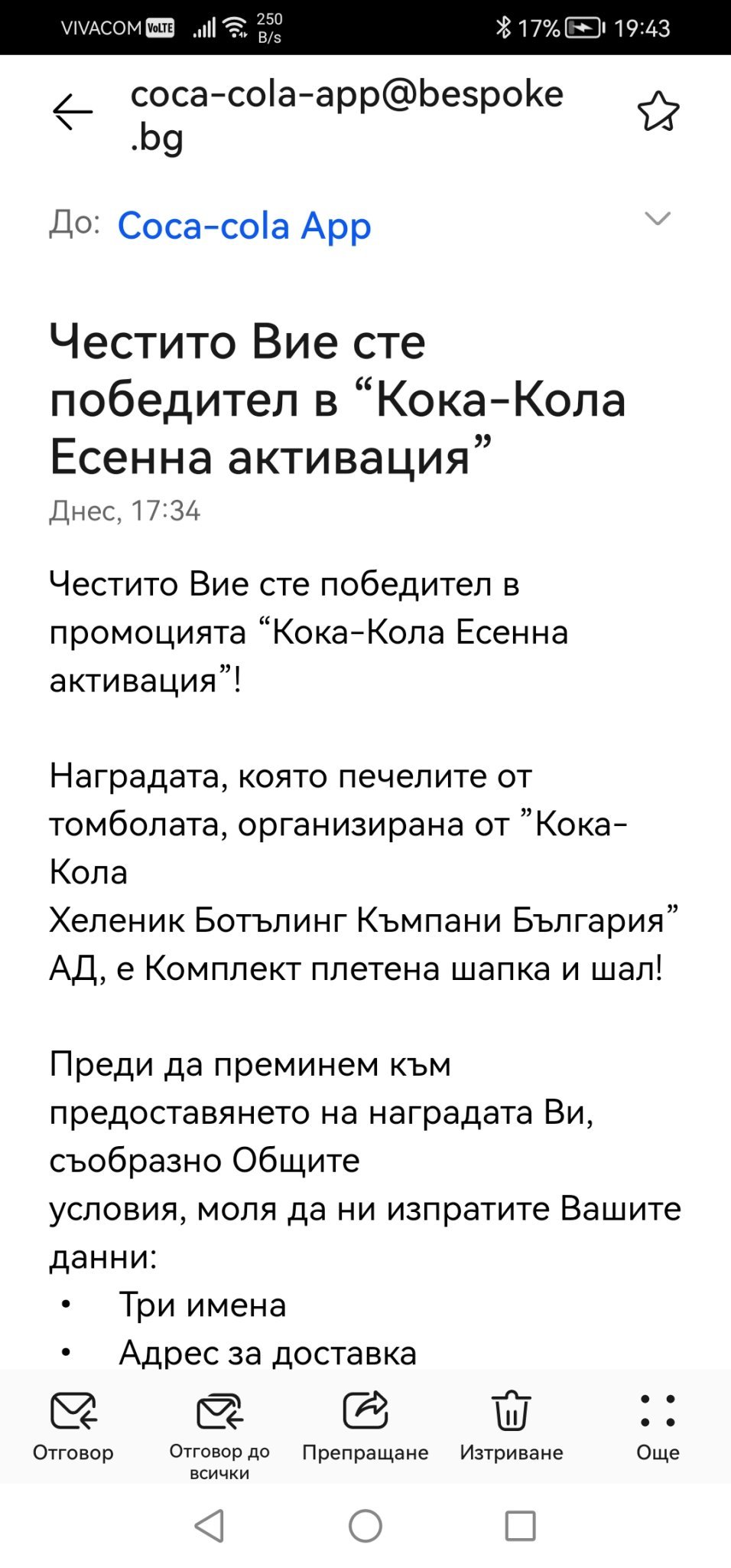 denyil-  само едно уточнение направи,за какво по-скоро питаш.Дали са изпратили съобщения на спечелилите/още на 16.10 са получили съобщения печелившите/ или дали са пратили отговор,на изпратените данни.