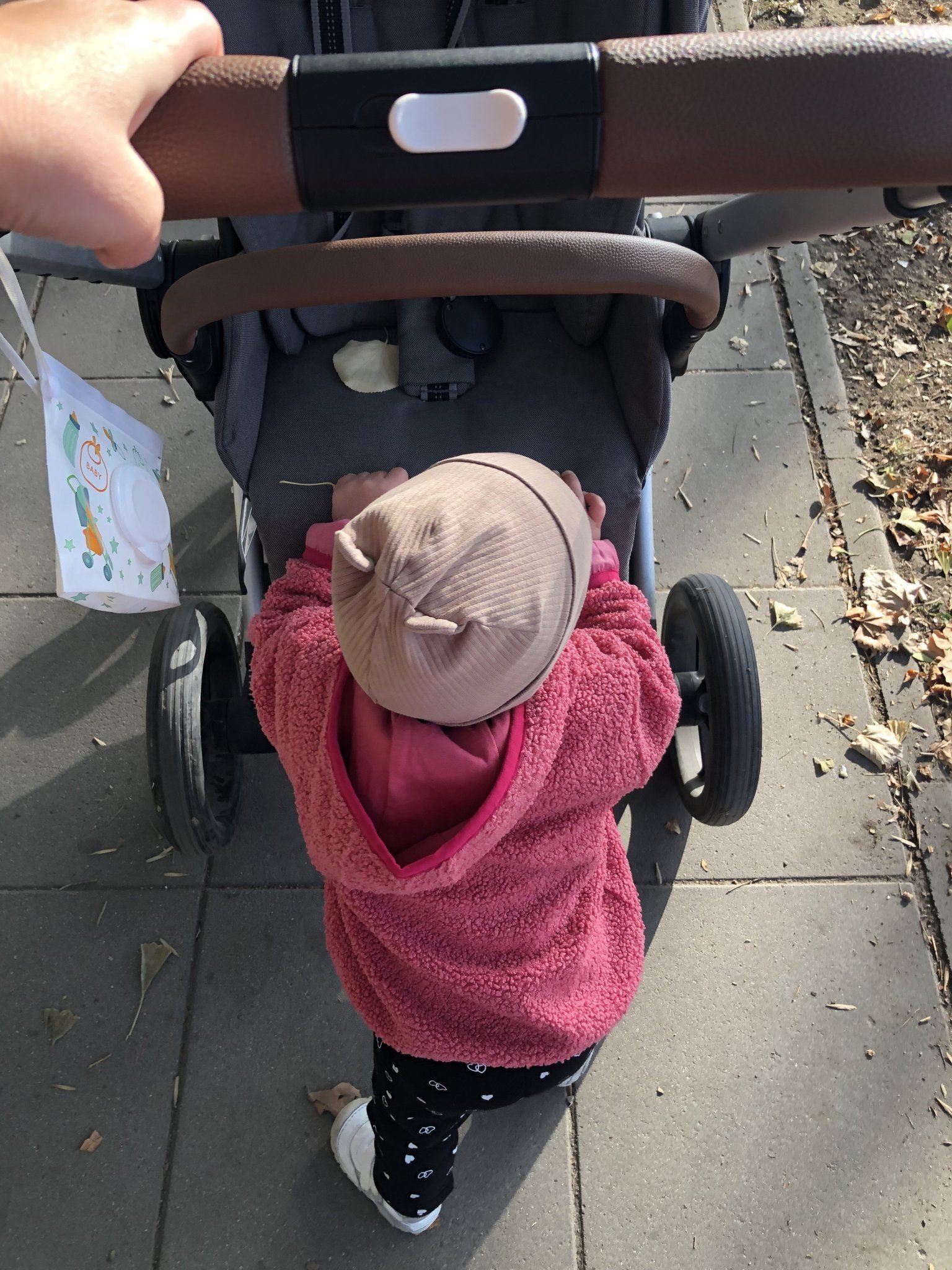 Новото, което правим е да ми помага да бутаме количката заедно 😄