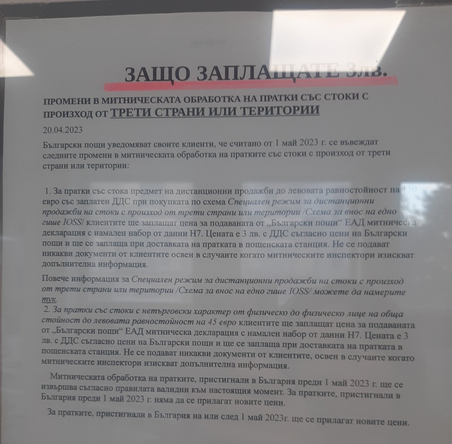 Чела съм, че отскоро задържали за проверка пратки, съдържащи козметика, течности и др., и искат 3 лв. На мен ми задържаха чаша, уж не било платено ДДС-то. Е, оказа се, че е, уж изготвили митническа декларация, която така и не видях, и за "свършената работа" им платих Sweat Smile