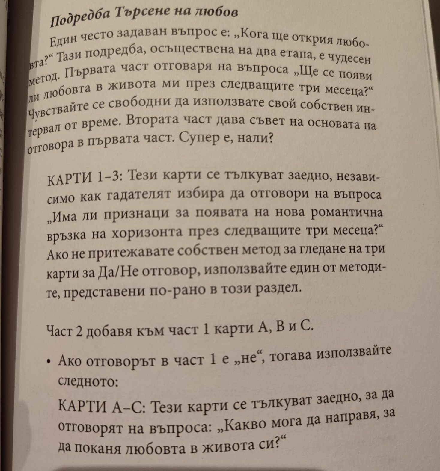 Абе като цяло картите не са цвете, според мен фокусът е върху нея самата, може би в момента трябва да обърне внимание на себе си отколкото на мъж.