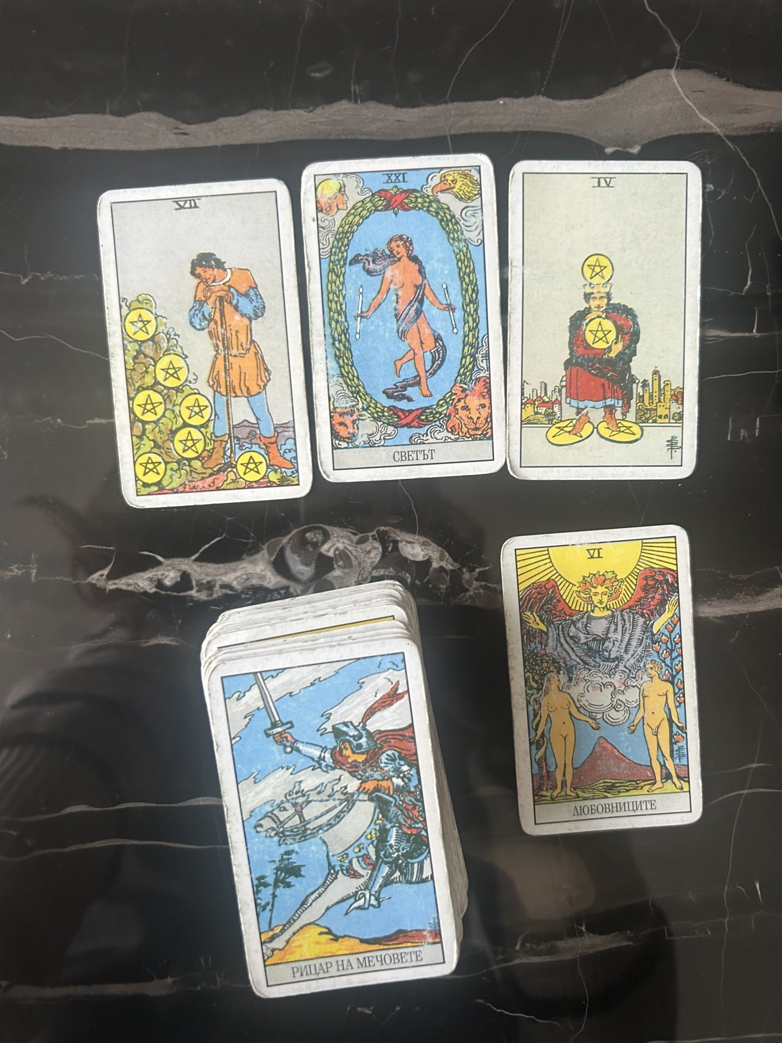 За мен това с кратки отговори да/не не работи. Една карта има както положителни, така и отрицателни проявления е рядко дава категорични отговори. Поне при мен не работи. По-скоро задавайте отворени въпроси и картите ще дадат насока.