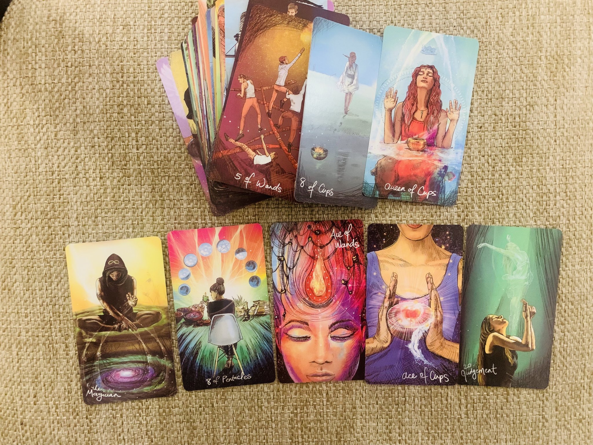 Това, което правех аз е да си направя кратка медитация от няколко минутки с дълбоко дишане и мисъл за деня, който ми предстои. Разбърквам хубаво картите, цепя, тегля и снимам. Така в края на седмицата имам карти за всички дни и мога да ги разгледам как са се проявили по отделно и като нишка.