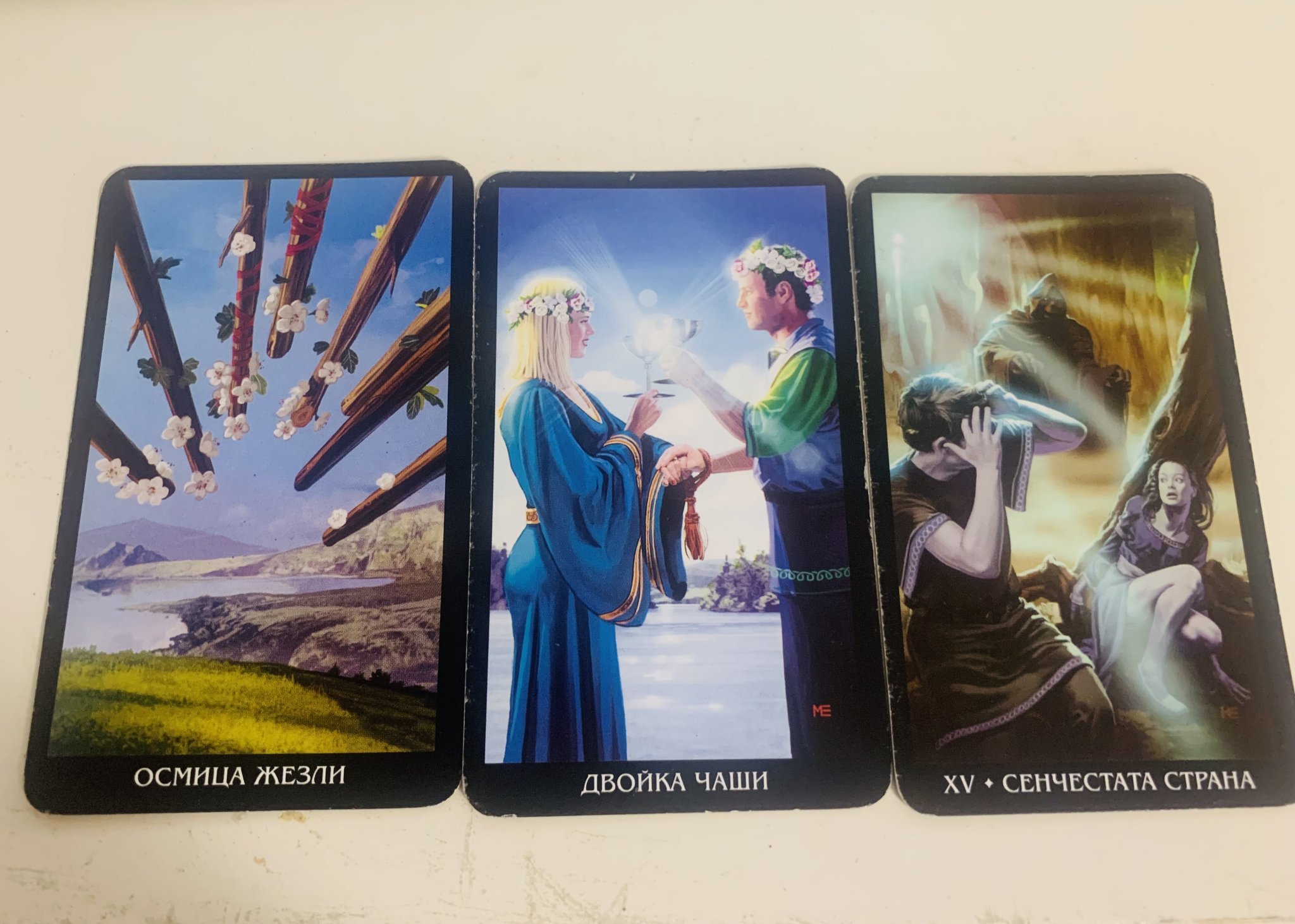 Иска ли да ме нарани този човек? Какво ще кажете по тези карти. Аз съм във връзка със стабилен партньор, а този другия не престава да ми пише, доста знаци токсични имаше и други съмнителни неща, които ме притесниха. Даже бих помолила някоя от вас да ми направи кратко четене, защото наистина ми е важно, да знам да се пазя ли от него. Интуицията ми не ми подсказва добро. Благодаря ви!