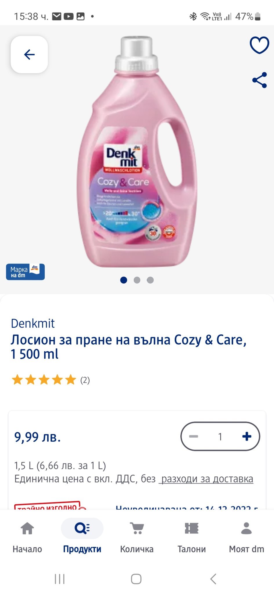 Да споделя, че закупих течния препарат за вълна от ДМ, тъкмо вървях натам като писах. Много съм доволна. Изпрах палтото на програма за вълна, на най-ниската възможна центрофуга  на програмата. Палтото е като ново, не се сви,  няма никакви поражения. Доволна съм и от препарата.