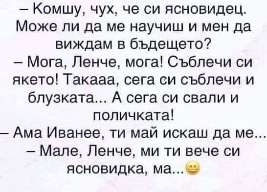 - Скъпа, ние сме женени само от десет дни, но ако решиш някога да ми изневеряваш, моля те, кажи ми предварително.