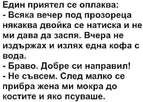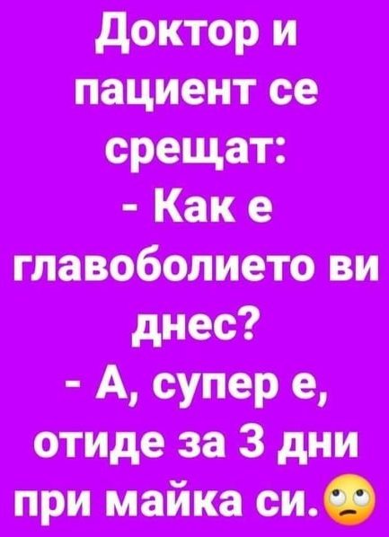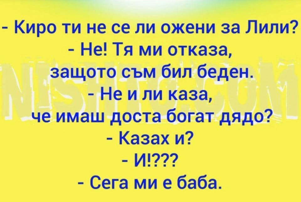 Хайде и един виц, да не е само голата истина и смях през сълзи.