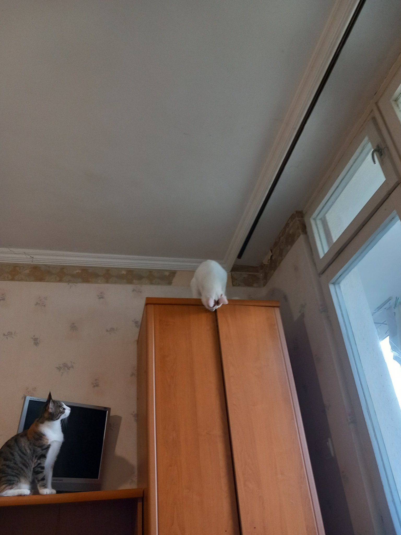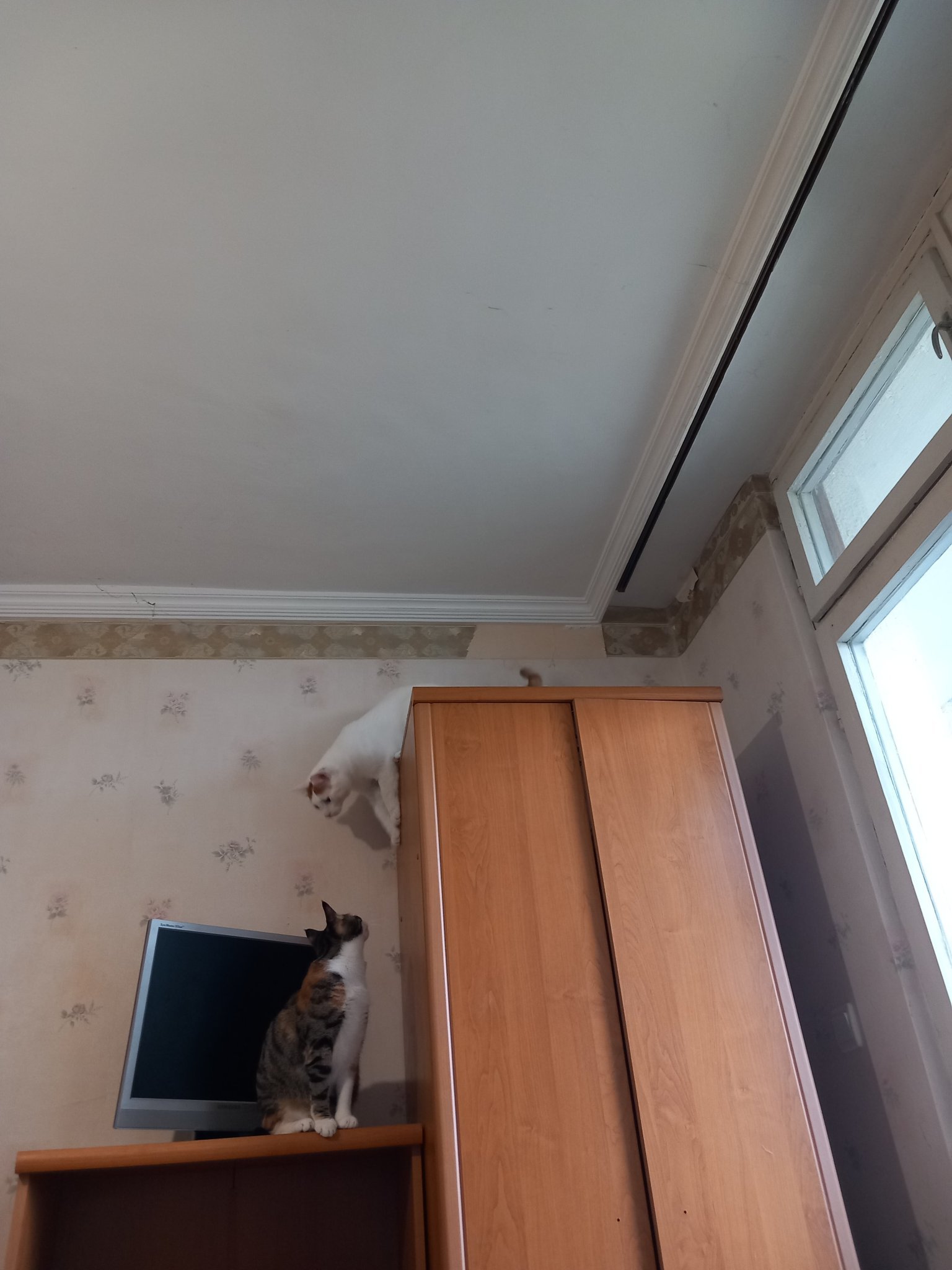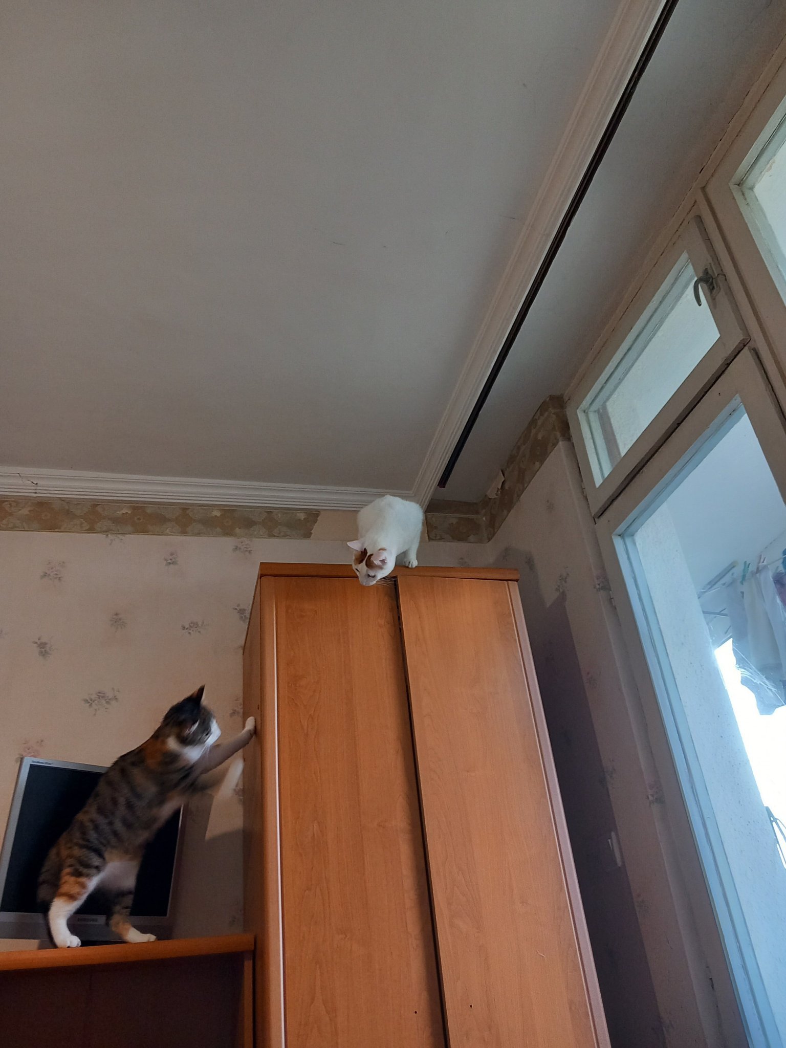 mariqivanova799, котките ти върху гардероба са много хитри. Едното отгоре отваря, другото отдолу набюдава. Кат' нЕк''ви шпиони по време на операция са. Wink