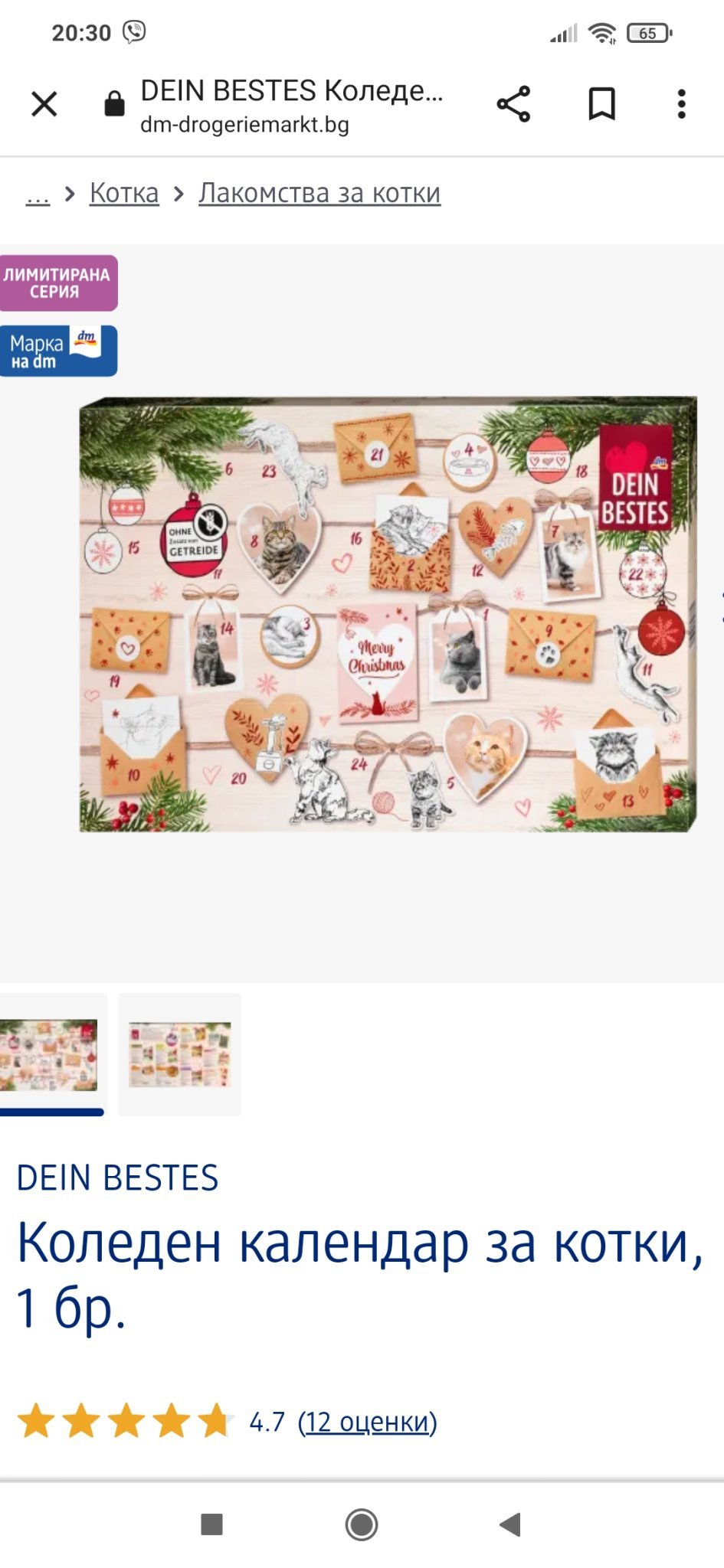 Днес минах през ДМ за нещо и попаднах на коледен календар за котки, не бях виждала, има и за кучета. Не че си представям как котката си отваря и брои дните до Коледа с лакомства. За някои с по-малки деца може да е интересно