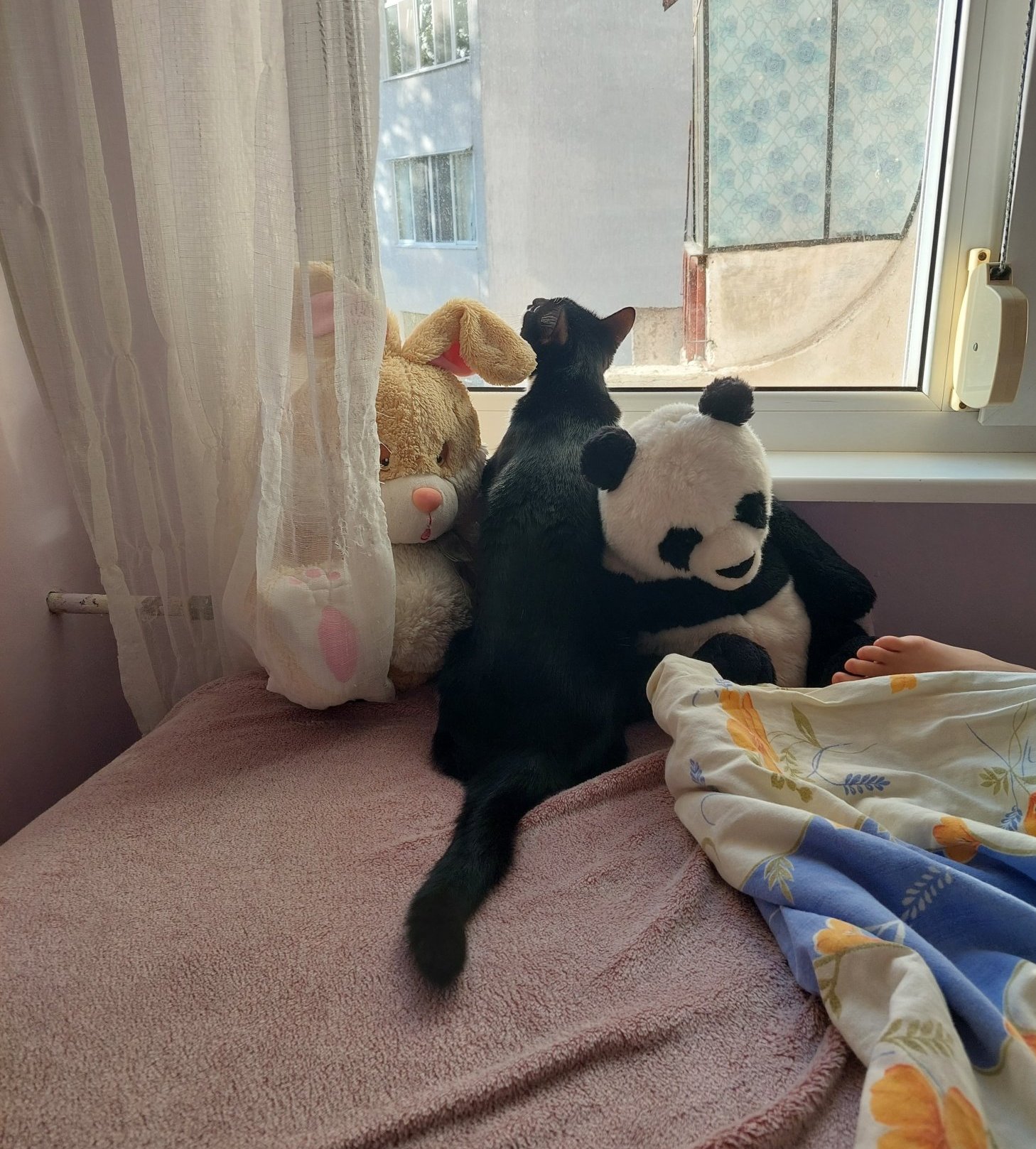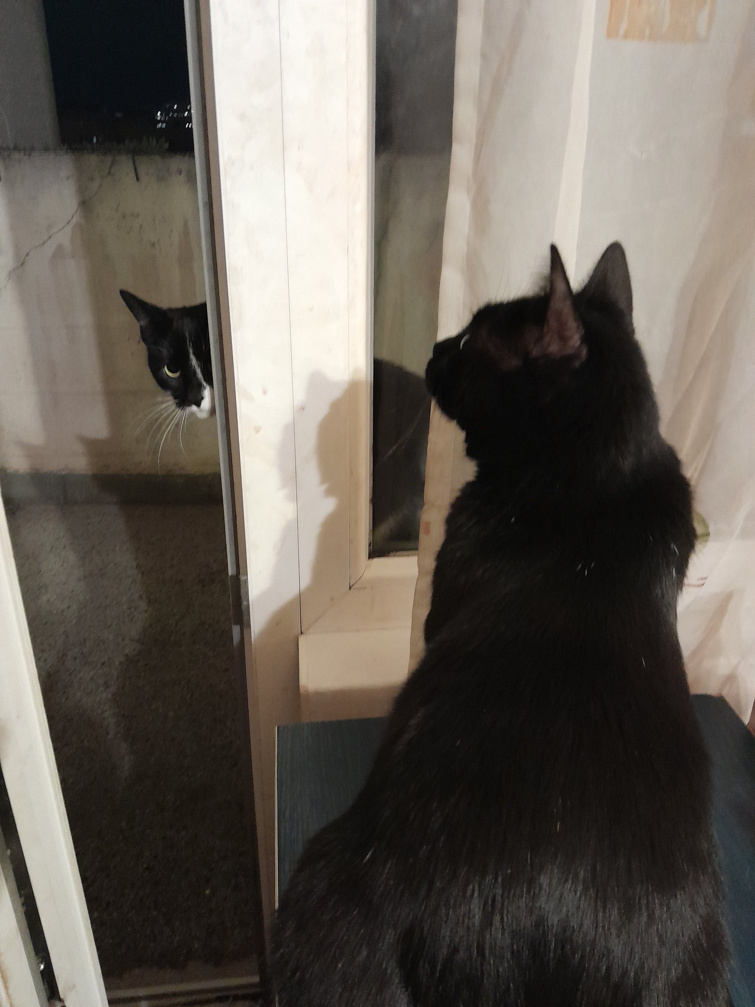 Раздават си шамарчета с лапички. Тя му ръмжи да й се маха от нейния шкаф.