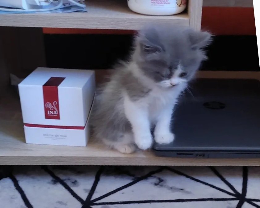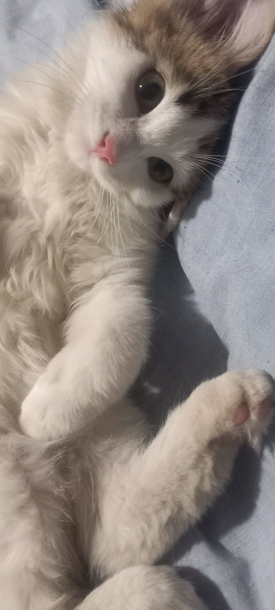 Утешава ме само мисълта, че  в къща с двор ще е по-щастливо и ще общува със себеподобни а няма да е затворено в панелка и да гледа света през прозореца. Макар, че точно то ми изглежда джмошарче. И знаете ли как мяука? Едва му се чува гласчето. А как ходи? Като важна пухена топчица..крачи спокойно и важно с вирнато опашле...и как нежно ме пипа с лапка по носа...