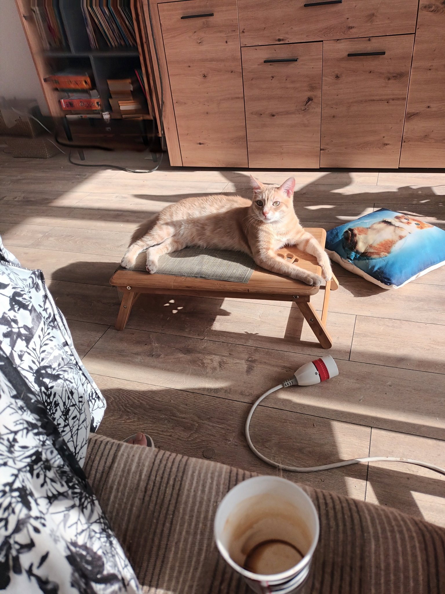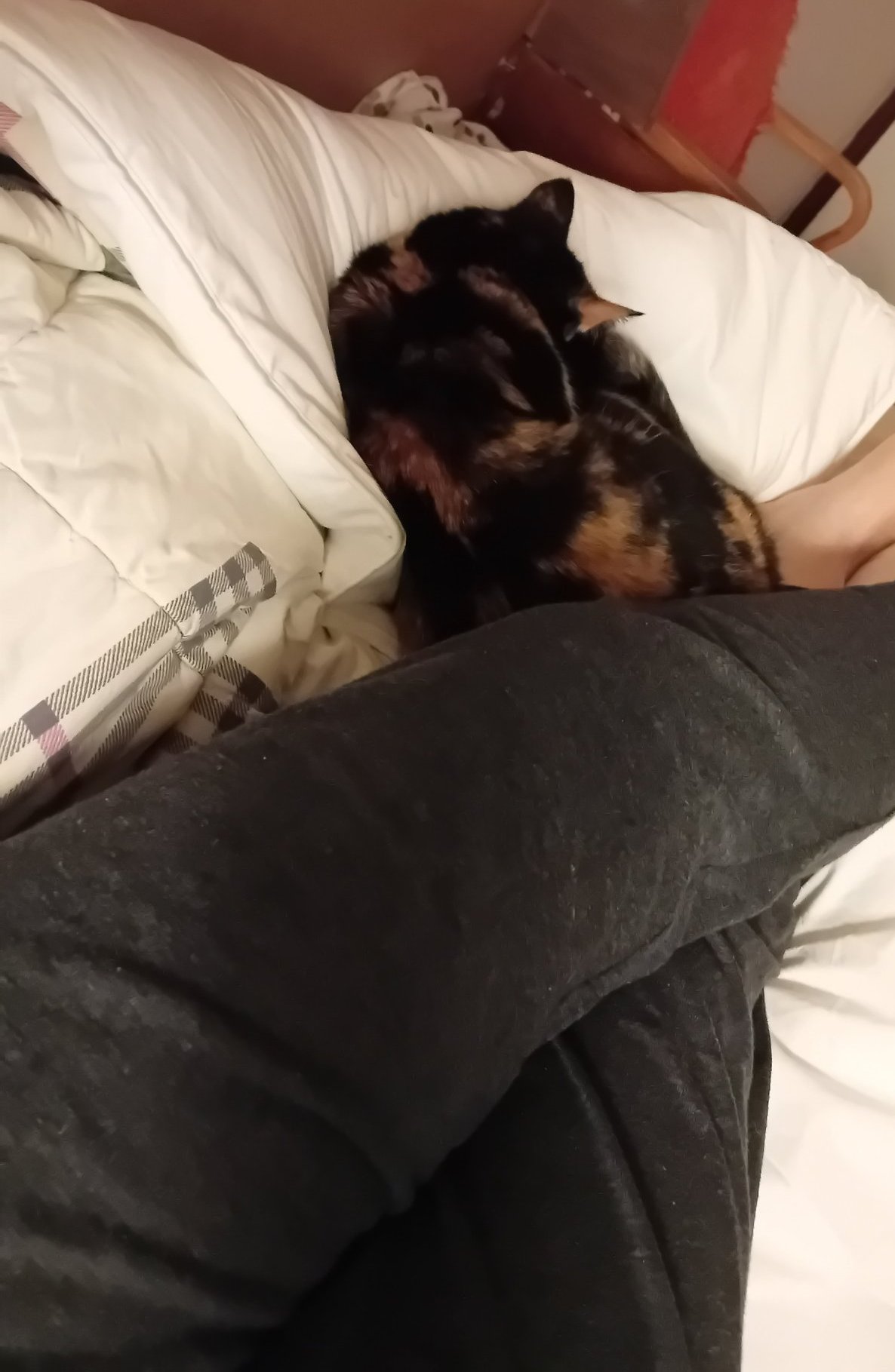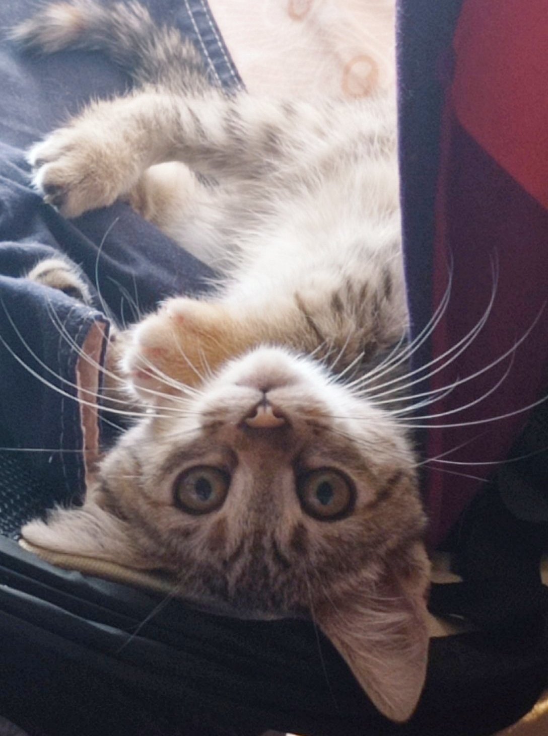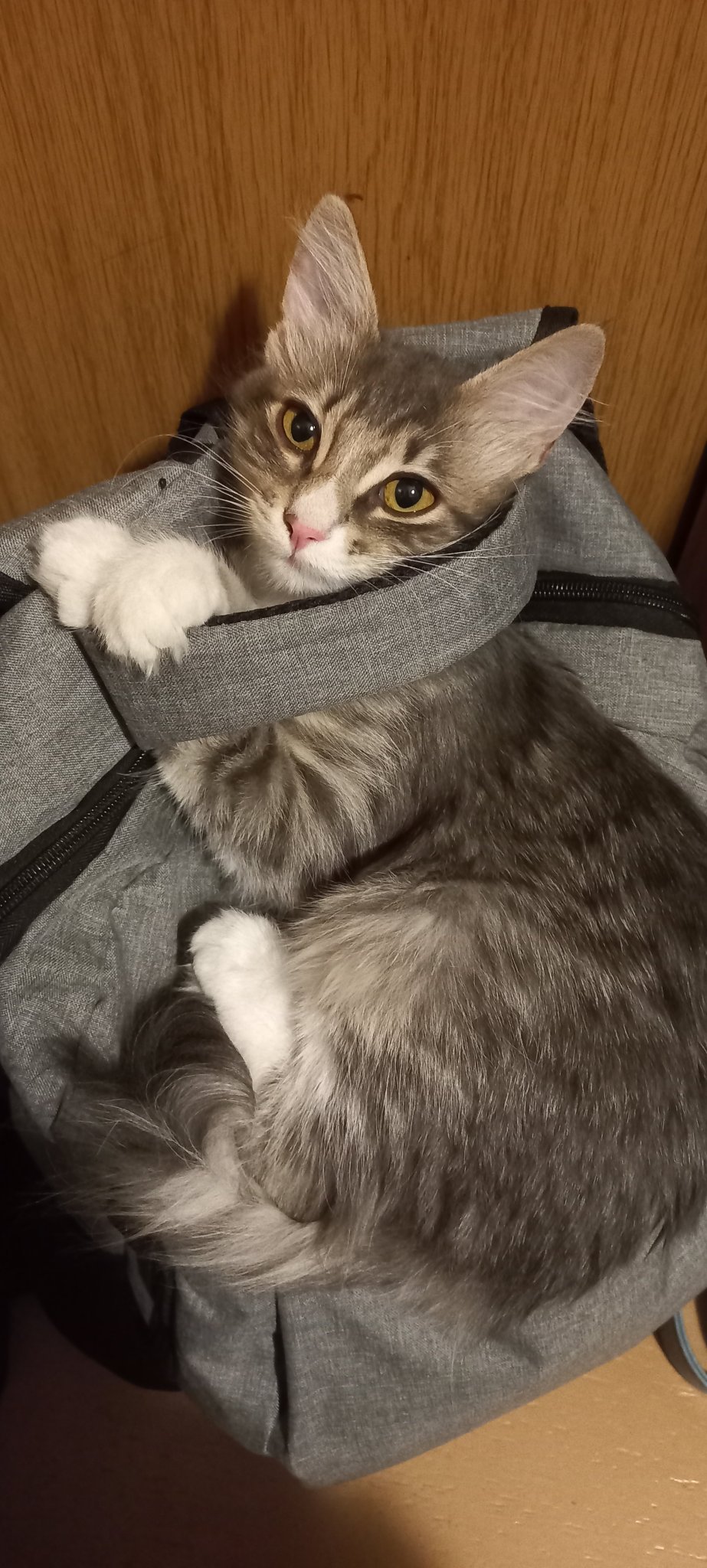 Мноооого хубави котенца в темата, наистина е хубава тази обмяна на опит за нас по - новите и разтоварвам от забързаното ежедневие,и ми липсва Лина като не я виждам по цял ден. Сигурно и аз на нея, днес отново бързах за представление на кака, после ходихме на мюзикъл страхотен и се прибрахме чак сега, и милото не може да насмогне при кой да се нагушка. Като хвърлих моята раница от работа, докато изчистя тоалетната и заредя купичката ѝ говоря, как мама пак тръгва, но ще доведе и кака. Легнала върху раницата и сякаш ми казва никъде няма да те пусна, успях да я снимам, да ти се скъса сърцето! Милата ни Линка поизмъчихме я тези дни, все ни няма, ама и на мен ми е криво признавам, искам да си я гушкам и целувам много.