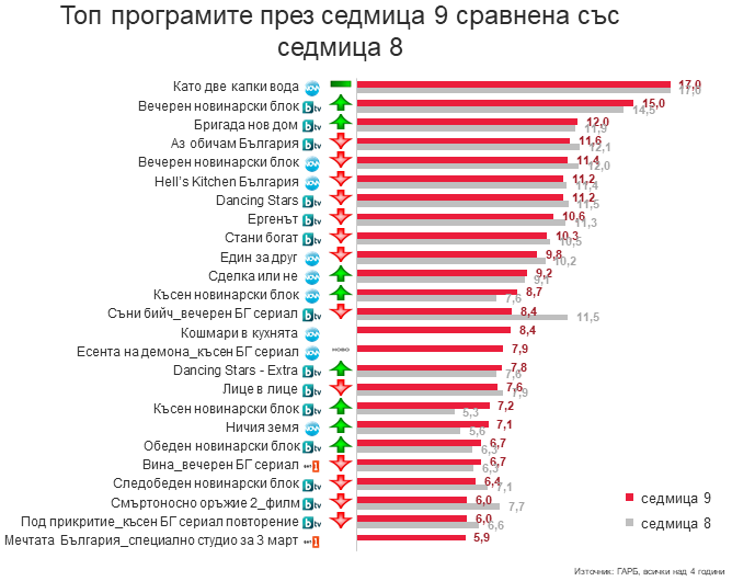 Единствено Капките си държат един постоянно висок рейтинг, недостижим за всички останали предавания.