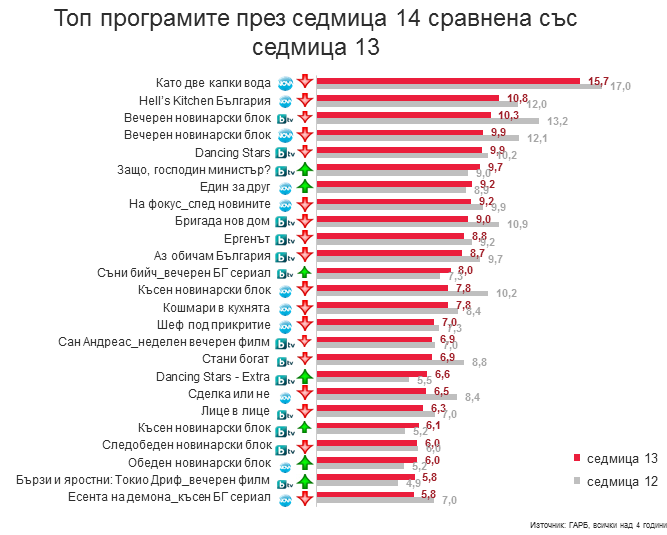 Голям провал за родните телевизии през седмица: 01.04 - 07.04