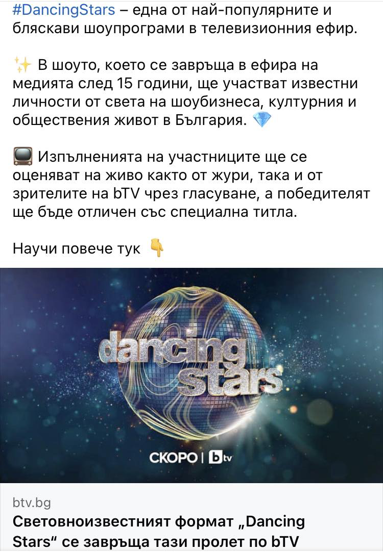 "Денсинг Старс" ли? Не знаех, че се завръща ефир.