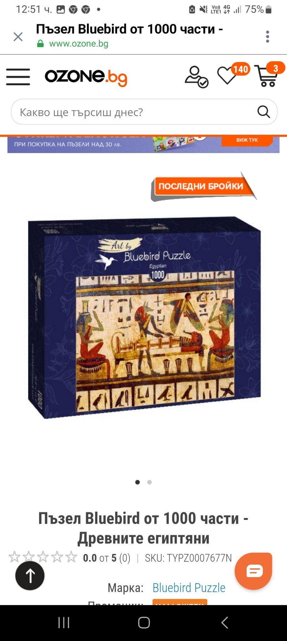 Получих пъзела в магазина на Озон. Платих 13.10 лв. Катастрофата е пълна, защото поръчах още два. Как пък ги видях онзи ден, да му се невиди
