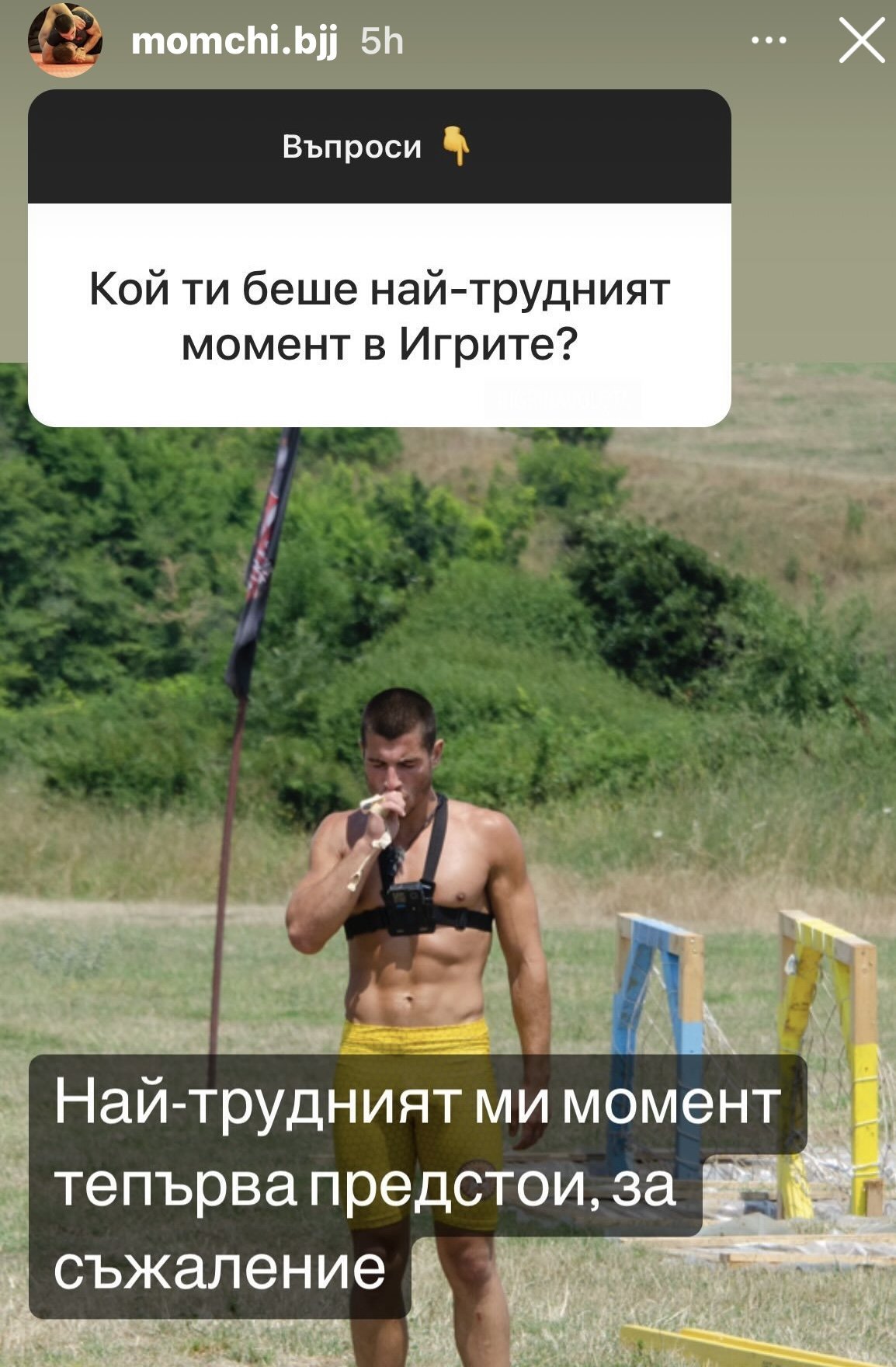 Току що видях стори в Инстаграм на Момчил, в което му е зададен въпросът: