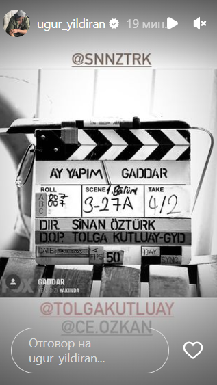Операторът Толга Кутлуай току що последва Сумие. Oператора ни в Гадар е много як и работи предимно с Ай Япъм. Оператор е на Ел Турко с Джан Яман.