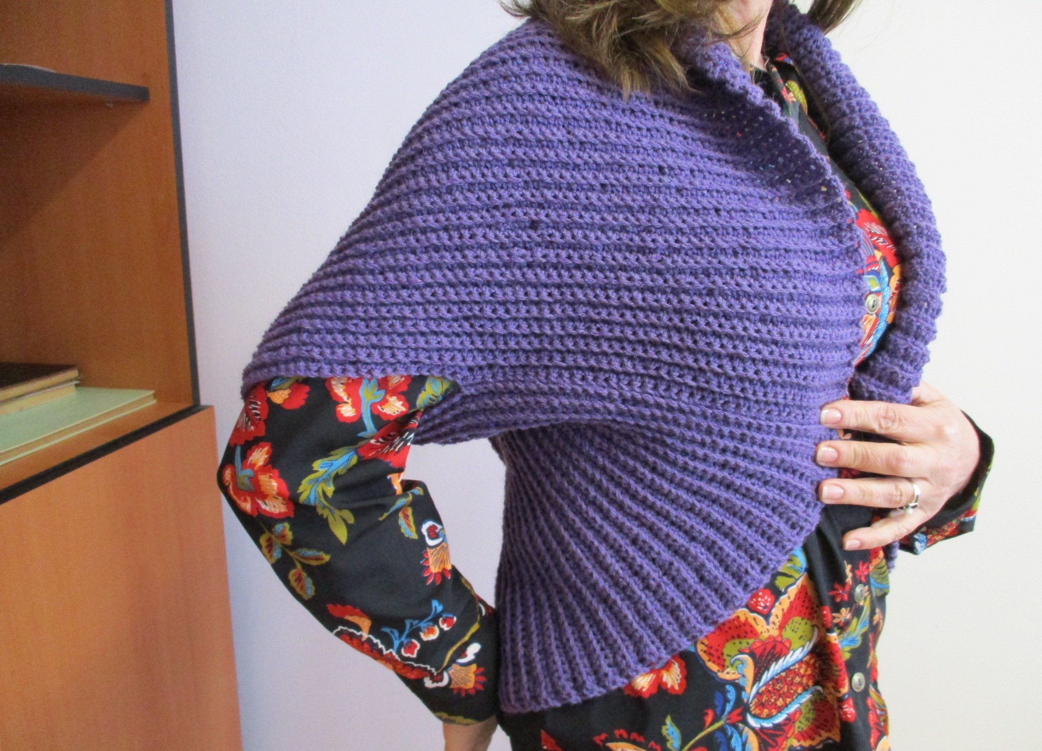 Една жилетка от мен - така наречените пашкул, доколкото помня. Преждата е  cool wool  на Performance - и аз не съм доволна от нея. Имаше мнооого "слама" в нея и вероятно ще се разпъне, но трябваше да я оползотворя. Плете се един голям правоъгълник и се зашива отстрани. Изглежда странно, но пък е много удобна. На мен малко ми е малка, ама ми се искаше да ви я покажа:
