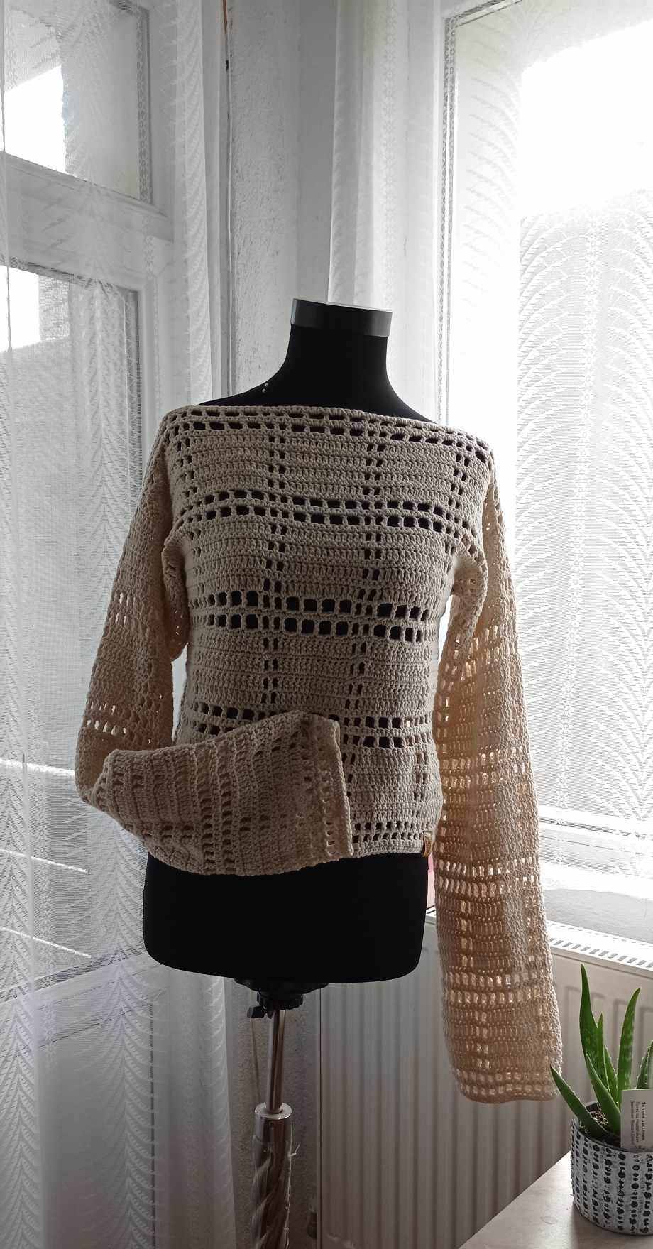 Здравейте, пазагубих се, но време за плетки много не ми остава,  зарадвах близка приятелка с пуловерче, плетен е по снимки в нета, бързо го изплетох, че нямаше оформяне на ръкавни и вратни извивки. Преждата е Ярн Арт Джинс.